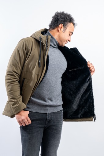 Herno jacket lined in soft faux fur with two-way zip closure. Equipped with a fixed lined hood and adjustable drawstring, double side pockets with zip closure, two comfortable inner pockets closed with zip. Embellished with simple lines that give it a contemporary elegance, excellent in the mountains, indispensable in metropolitan everyday life.