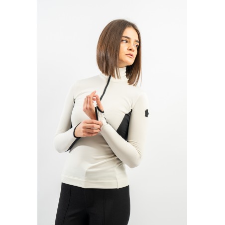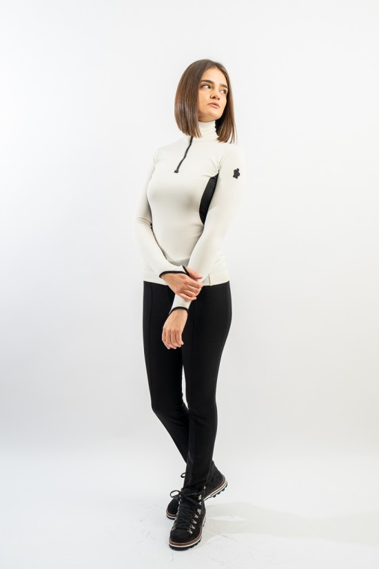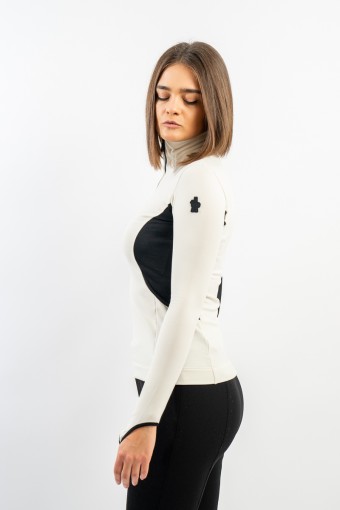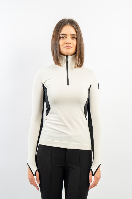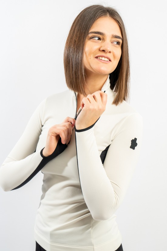 The half-zip turtleneck MONCLER is part of the Grenoble collection. Lightweight, high-performance and breathable are the features that distinguish this garment made of Polartec® Power Grid™, a fabric that guarantees warmth and resistance to humidity. It features a Water Repellent Look half-zip closure and cuffs with jersey gaiters. Embellished with a silicone logo on the sleeve and contrasting color inserts under the sleeves and sides. Perfect to wear as a second layer to complete the outfit, ideal for facing the days on the ski slopes in the best possible way.