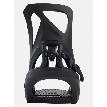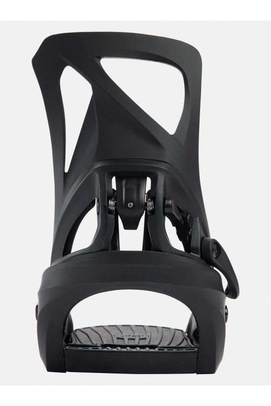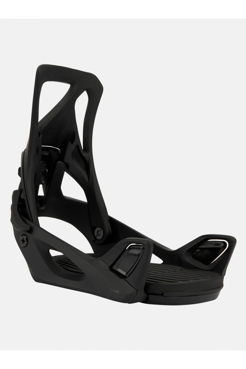BURTON STEP ON WOMAN. Simple. Sure. All Mountain. These women's bindings combine an intuitive pairing of boots and bindings, with all-mountain performance. The three connection points offer simplicity, speed, security and unmatched board control. The Re:Flex mounting system improves flexibility and feel with the board while reducing weight and is universally compatible with ALL current snowboard mounting systems. The Flad system also allows you to make micro adjustments in the forward tilt angle for a custom position. BURTON, INNOVATORS AND CREATORS FOR THE SNOWBOARD WORLD!