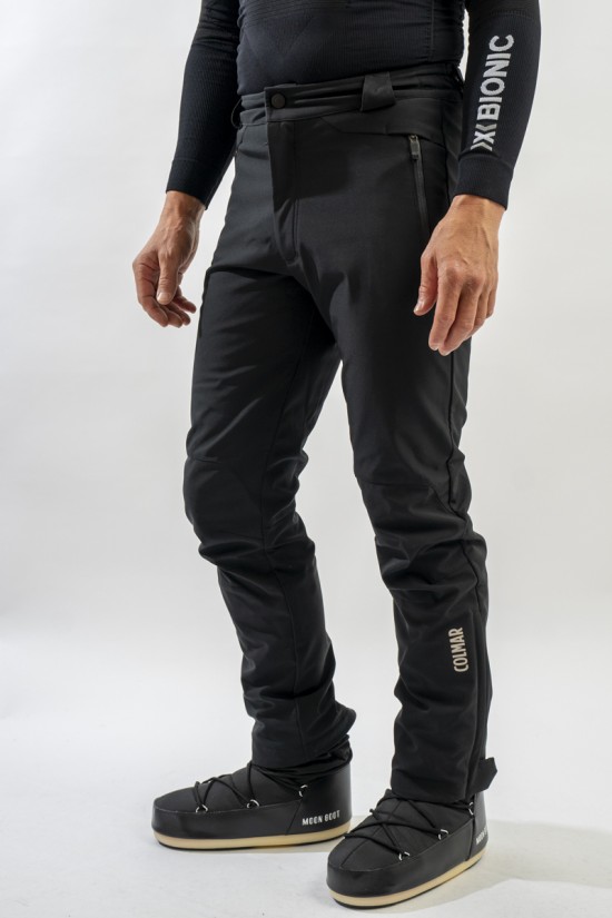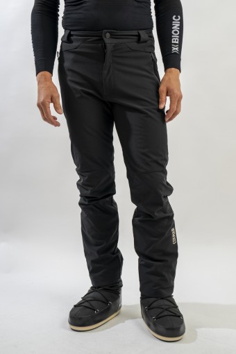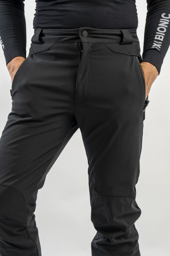Ski pants made of stretch softshell fabric with fleece on the inside. Waterproof and breathable. The ergonomic cuts allow for an optimal fit, making it comfortable and practical. Finished with a windproof and snow gaiter, it is perfect for a day on the snow in all conditions.