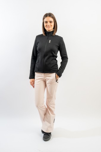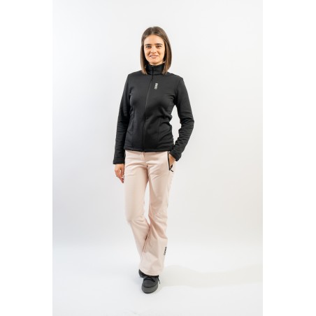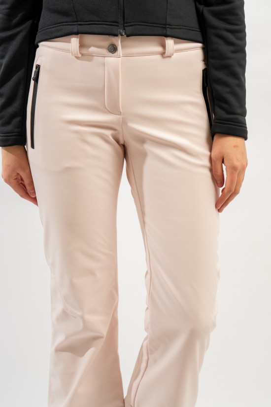 Ski pants made of stretch softshell fabric with fleece on the inside. Waterproof and breathable. Slim fit and high waist reinforced on the lumbar area. Complete with belt loops for better fit. Finished with a snow gaiter and waterproof zips, it's great on the track in all conditions.