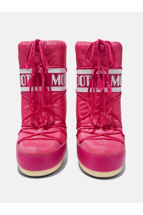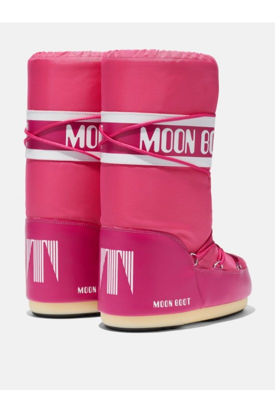 Classic après-ski MOON BOOT icon, genderless, with non-slip, ambidextrous sole and insulating padding that keeps the foot warm and dry. Braided laces on the front. Reinforced heel with contrasting logo print.