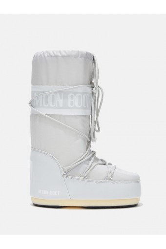 Classic après-ski MOON BOOT icon, genderless, with non-slip, ambidextrous sole and insulating padding that keeps the foot warm and dry. Braided laces on the front. Reinforced heel with contrasting logo print.