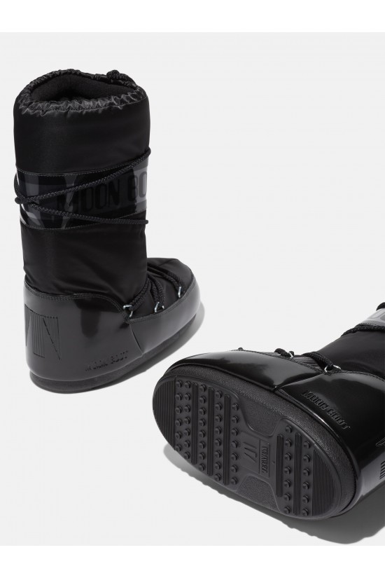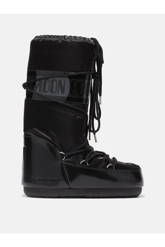 Glance is MOON BOOT 's iconic model made of precious nylon satin. Ambidextrous is equipped with an insulating padding that keeps the foot warm and dry. Braided laces on the front. Reinforced heel and non-slip sole for perfect grip on all types of terrain.