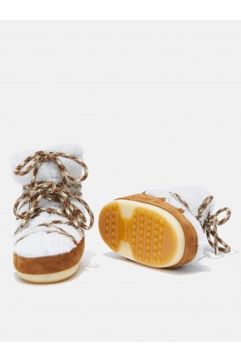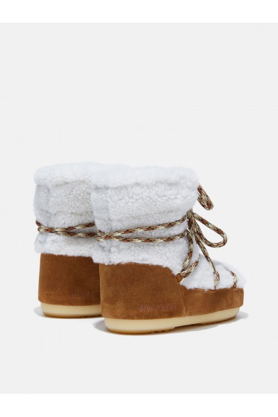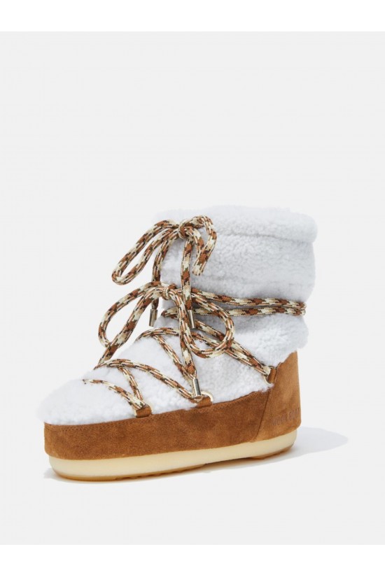 Light is the chic MOON BOOT for a stylish aprèe-ski. Made of soft suede and 100% water-repellent shearing. Insulating padding keeps your foot warm and dry. Two-tone braided front laces. Finally, the non-slip tread allows optimal grip on all types of terrain.