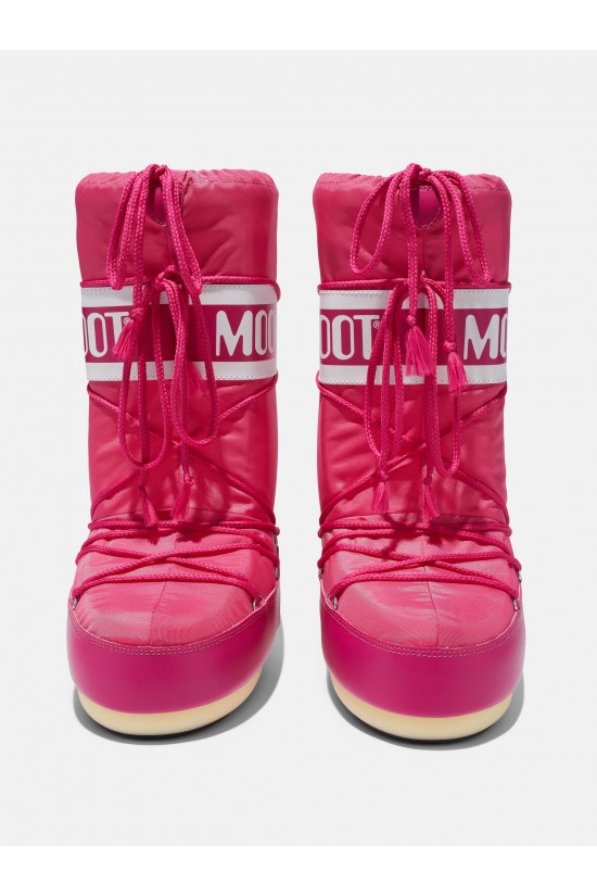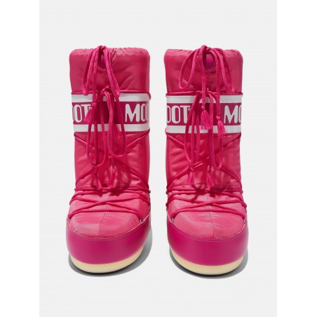 Classic après-ski MOON BOOT icon, genderless and ambidextrous. Insulating padding keeps your foot warm and dry. Braided laces on the front. Reinforced heel with contrasting logo print. The non-slip sole ensures optimal grip on any terrain.