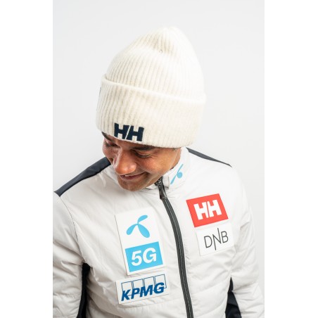 Inspired by the Norwegian national alpine ski team, it features its sponsor patches. Warm and enveloping, it is made of soft ribbed fabric. The high flap provides greater protection to the ready area. Designed with the environment in mind, it is made of at least 50% recycled material.