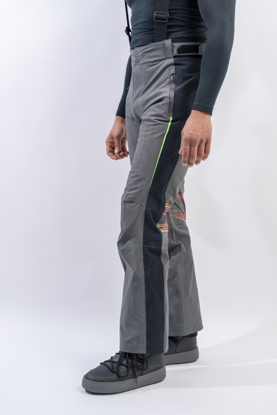 Inspired by the World Cup, ROSSIGNOL 's Hero ski pants have been tested to ensure maximum performance in all conditions. Full freedom of movement and comfort are given by the linear cut and stretch fabric. The waist is perfectly adaptable thanks to the suspenders and Velcro straps positioned on the hips. The fabric, combined with the membrane and the rubberized zips make the pants highly waterproof and breathable. Warm and soft, it is padded with Primaloft wadding that maintains a constant warmth.