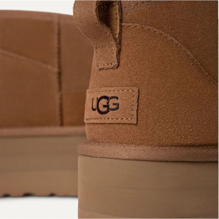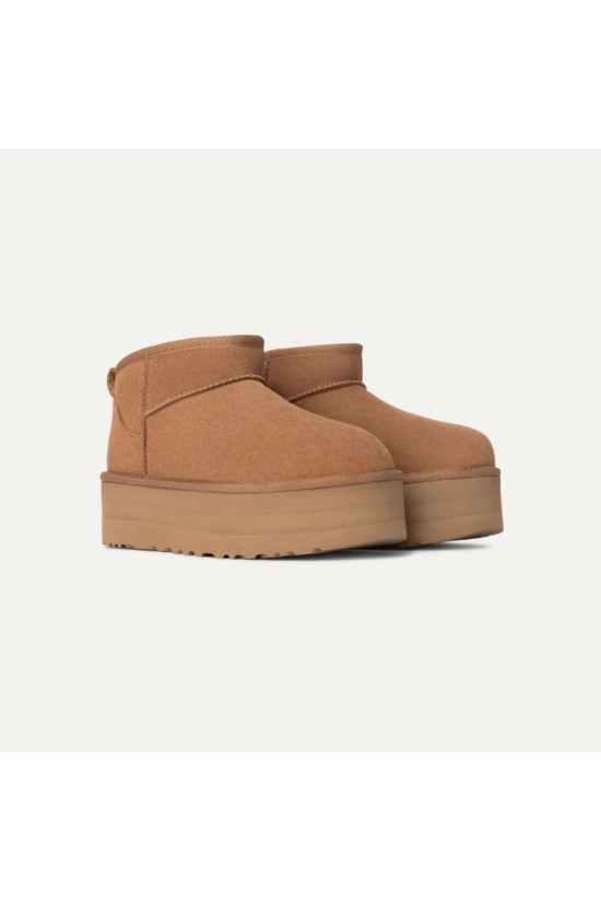 New interpretation of the Ultra Mini with the addition of the 5.1 cm Platform sole that slims the leg and is in perfect harmony with the new trend. It's warm, comfortable and glamorous. The upper is made of classic suede and the interior is made of UGGplush™, ensuring optimal warmth. Finished with rear tie rod and heel counter. A must-have for next season!
