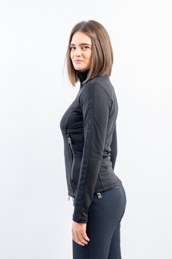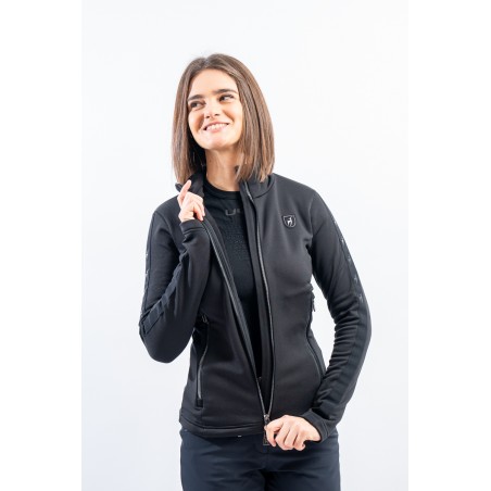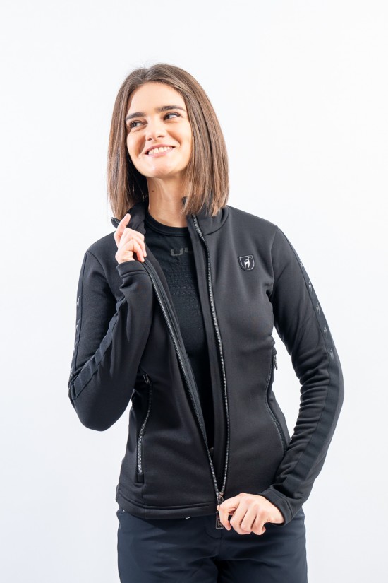 Full zip undersuit made of stretch and fleece fabric. Characterized by logoed elastic bands that run along the entire length of the sleeve, and metal look zips. Breathable and warm, it is ideal to wear as an additional layer under the jacket and to practice any outdoor sport.