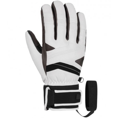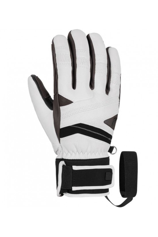 Ski glove made of fine goat and sheep leather, soft and comfortable. The Primaloft Gold wadding is compact, warm and ensures optimal insulation. Breathable, it is lined with fleece and equipped with a windproof membrane. The cuff can be closed with Velcro to allow a perfect fit and better retain heat. On the palm the writing REUSCH made of rubber, improves grip.