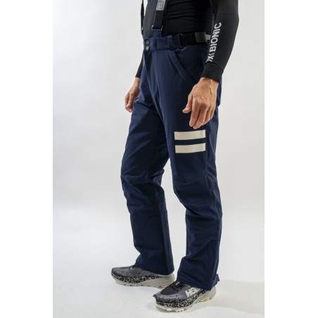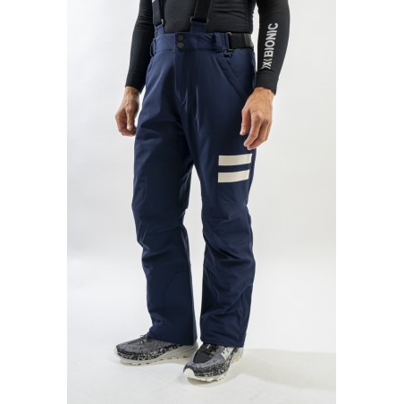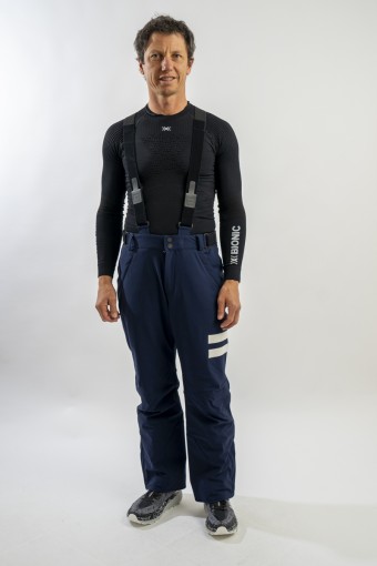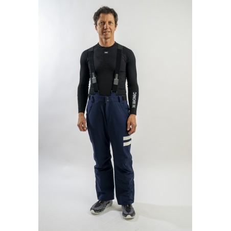Contemporary and extremely comfortable, the 901 ski pants have been designed to ensure comfort on the slopes in all conditions. Made of stretch technical fabric and padded with soft wadding, they are highly insulating and promote maximum freedom of movement. The high waist, equipped with elastic inserts and Velcro adjustment, allow for a perfect fit. The addition of removable shoulder straps provides even more protection.