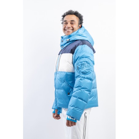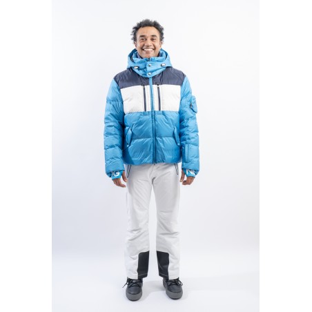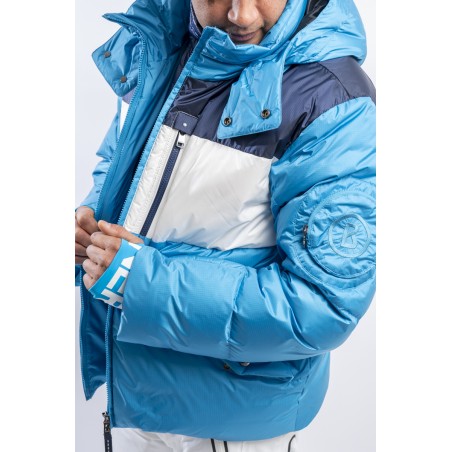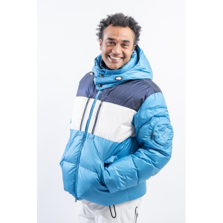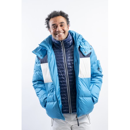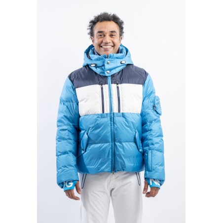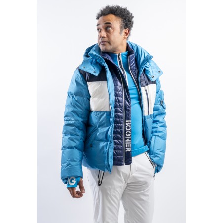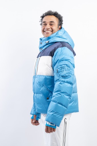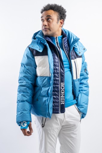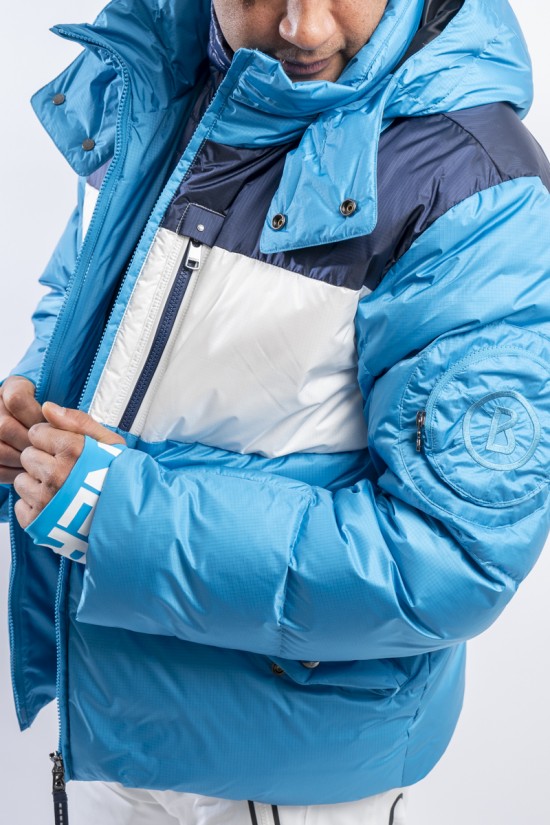 Ivar is the BOGNER ski jacket with a contemporary and versatile design. Warm and highly insulating thanks to the padding in fine 90/10 down, the additional insert, on the front, provides additional protection. Made of ripstop nylon, it is more durable, extremely waterproof and breathable. The look is characterized by a wide boudine and a loose fit. Perfect for skiing and more, it is equipped with every snowproof option and multiple pockets for optimal practicality. The hood is detachable, to best adapt it to the weather condition and the occasion.