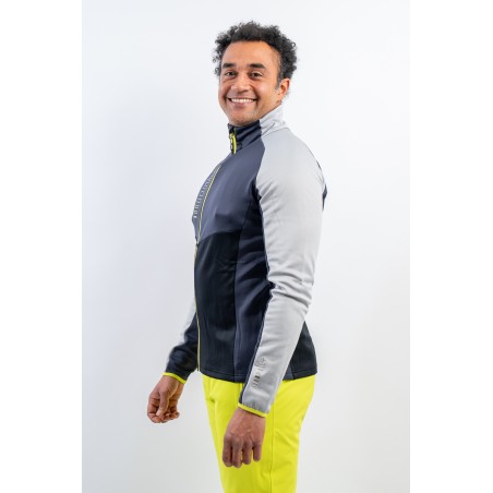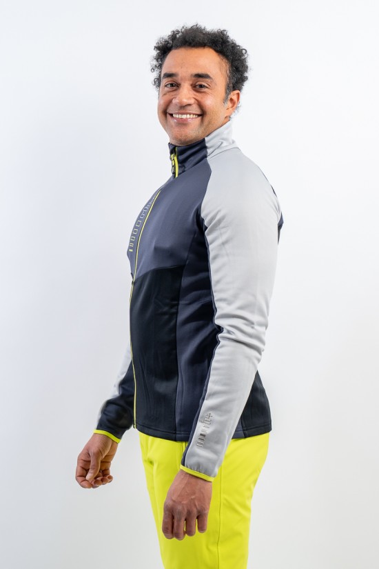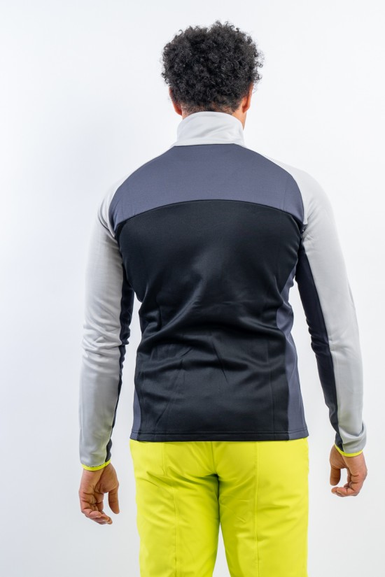 Full zip undersuit made of breathable technical fabric. The interior is plush to return a pleasant feeling of warmth and comfort. The elasticity of the fabric facilitates movement. Versatile, it is ideal under a ski jacket or as a complement to any sporting activity.