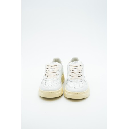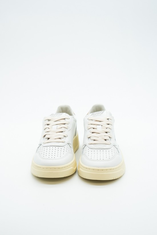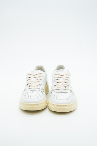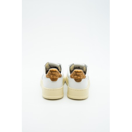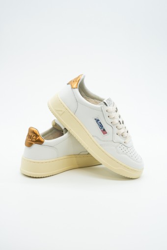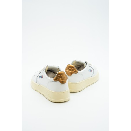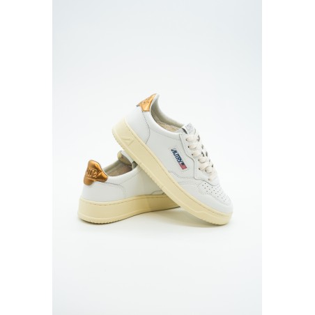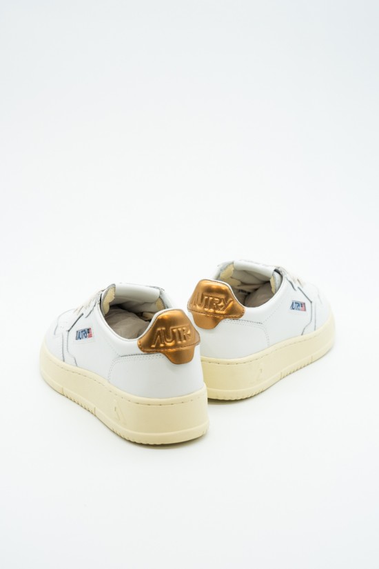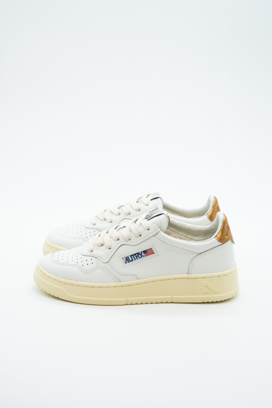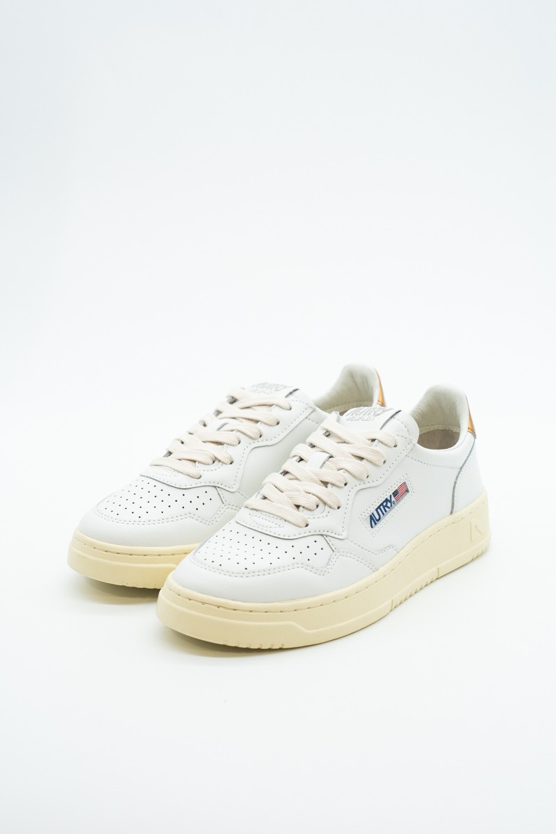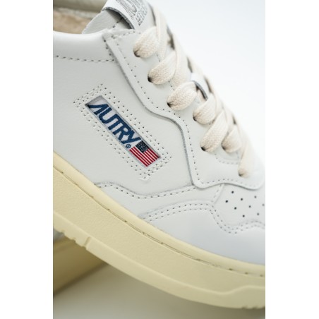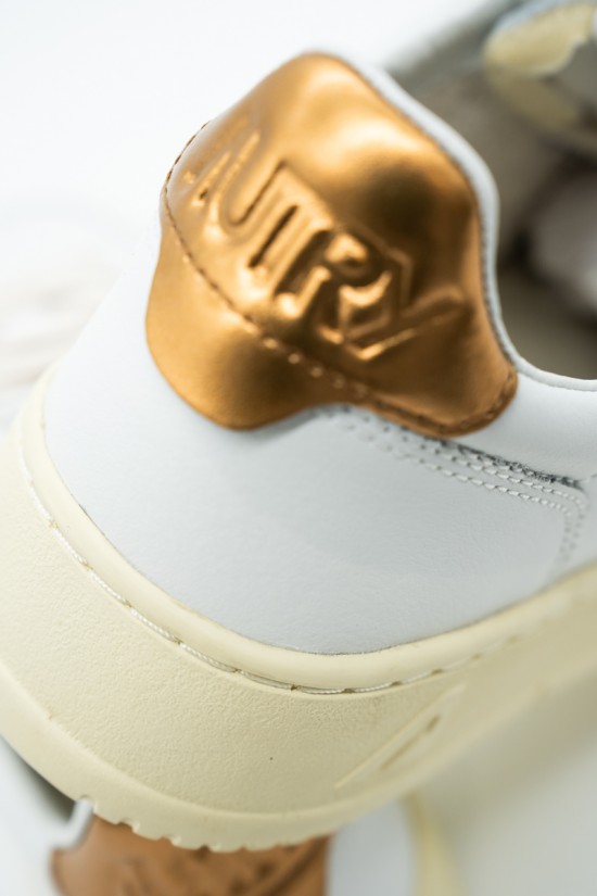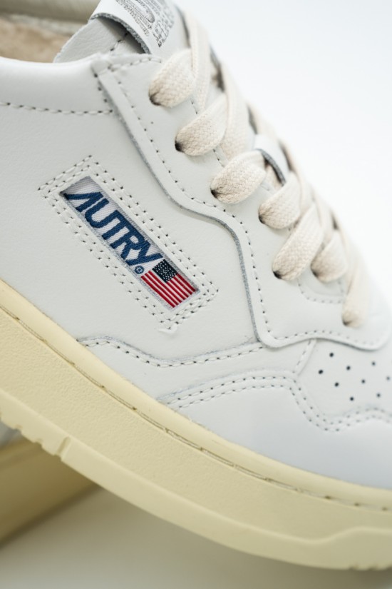 Autry is the Eighties-inspired sneaker. The vintage style is made contemporary by iconic details such as the bronze-colored laminated leather heel tab in contrast with embossed logo and the label sewn on the tongue. Made of leather with perforation at the toe to promote breathability. Its originality is identified in the American flag that characterizes each model.