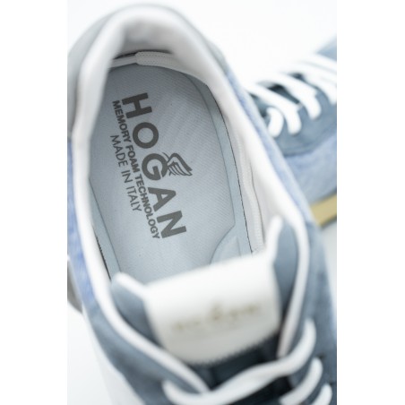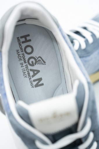 The H601 sneaker by HOGAN is made of soft suede and cotton denim, enriched on the side by the iconic H in smooth leather in contrasting color. This running-derived model perfectly combines a sporty-chic attitude and maximum comfort. Designed for optimal grip, thanks to the original tread with H-shaped studs. The memory foam fussbett ensures a cushioned fit.