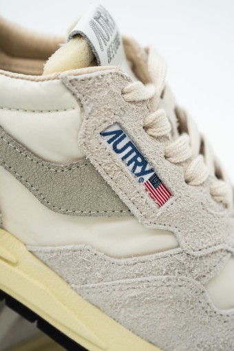 Reelwind by AUTRY, is the sneaker inspired by the dynamic design of running shoes. It represents the innovation of performance footwear with a vintage 80s aesthetic. Made of elegant suede and durable nylon. The ultra-light Phylon rubber sole is embellished with starry details, the brand's classic bands and the iconic 'A'-shaped arrow embossed on the sole. A perfect combination of style and functionality that at the same time ensures an extremely convenient and comfortable walking experience.