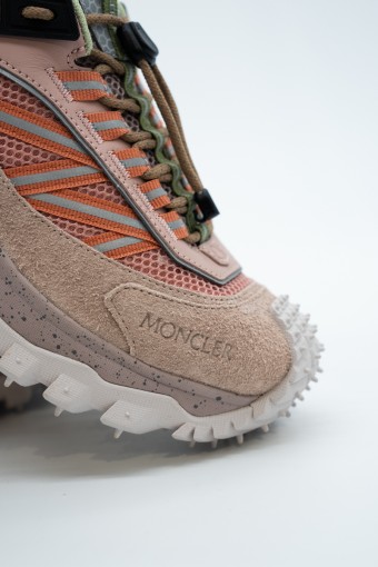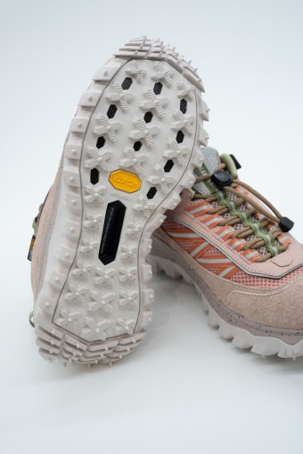 Protection and lightness at every step, MONCLER 's Trailgrip sneakers are the ideal footwear in the city as well as in the mountains, offering you maximum comfort. Made of rubberized mesh, suede and nubuck with smooth leather details in shades of pink. Characterized above all by the EVA and rubberized mesh midsole that offers flexibility and lightness, while the VIBRAM® MEGAGRIP rubber tread performs a non-slip action. These sneakers are part of the Grenoble Day-Namic MONCLER collection, ideal for outdoor activities.