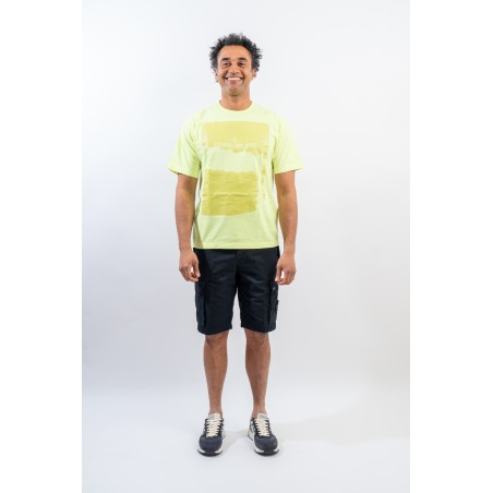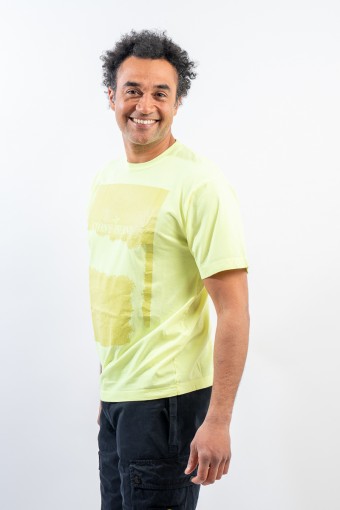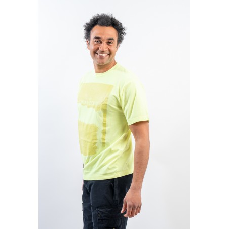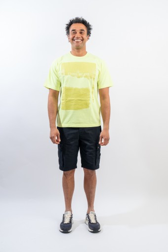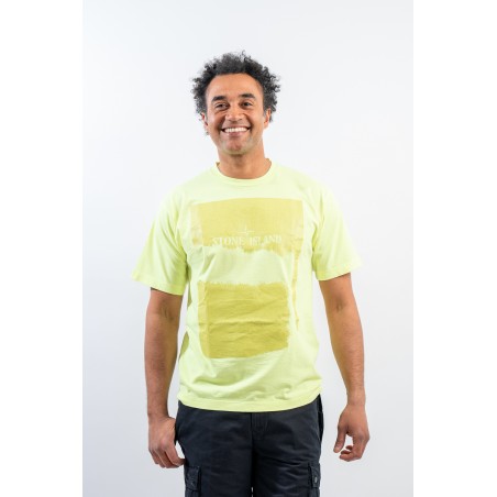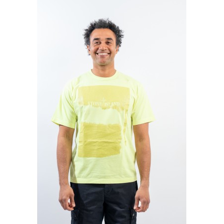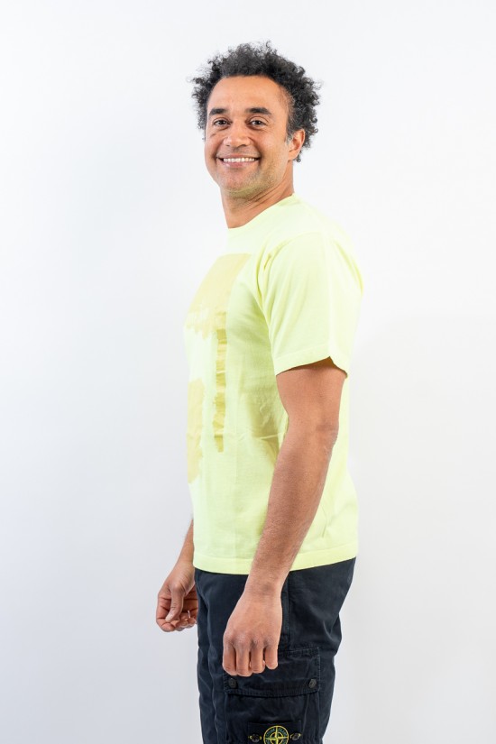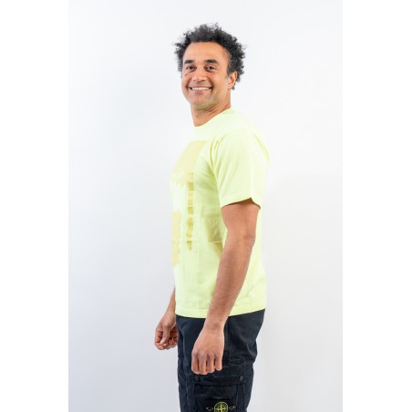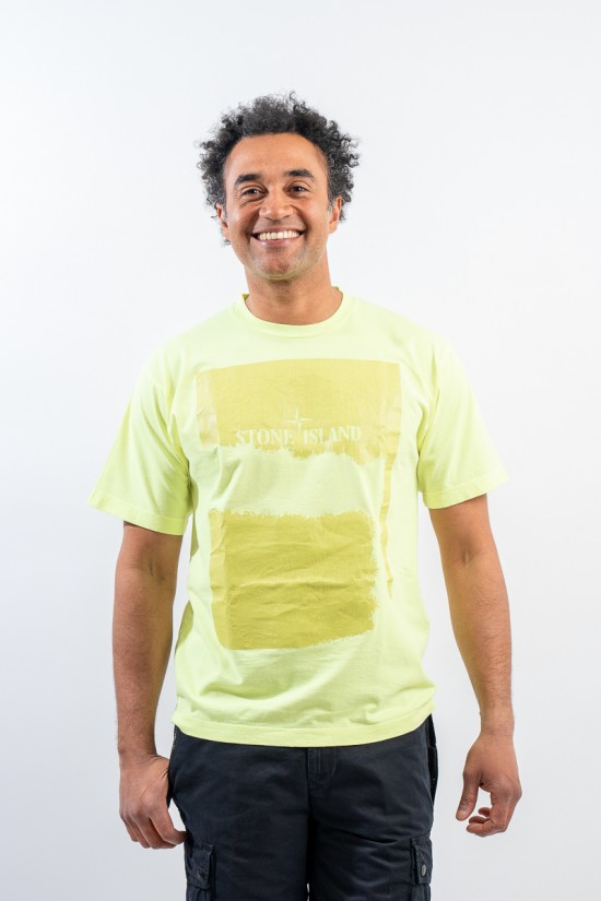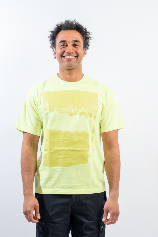 Garment-dyed cotton jersey crewneck T-shirt. Crew neck with ribbed neckline. Enlivened by the deliberately scratched maxi print, depicting the STONE ISLAND logo and the iconic Compass Rose on the chest. Regular fit.