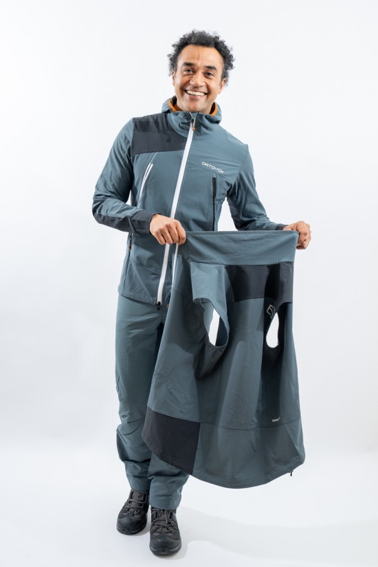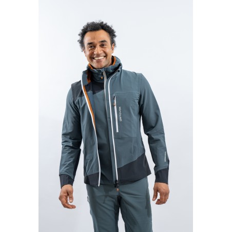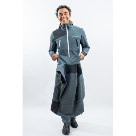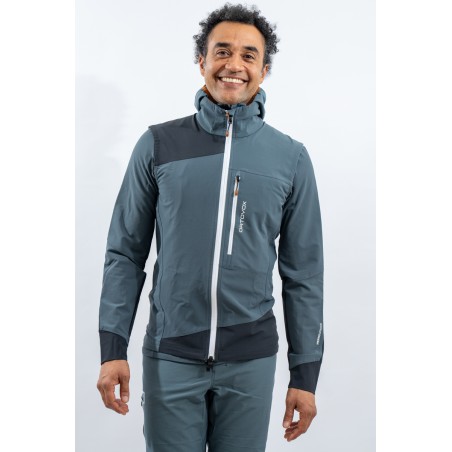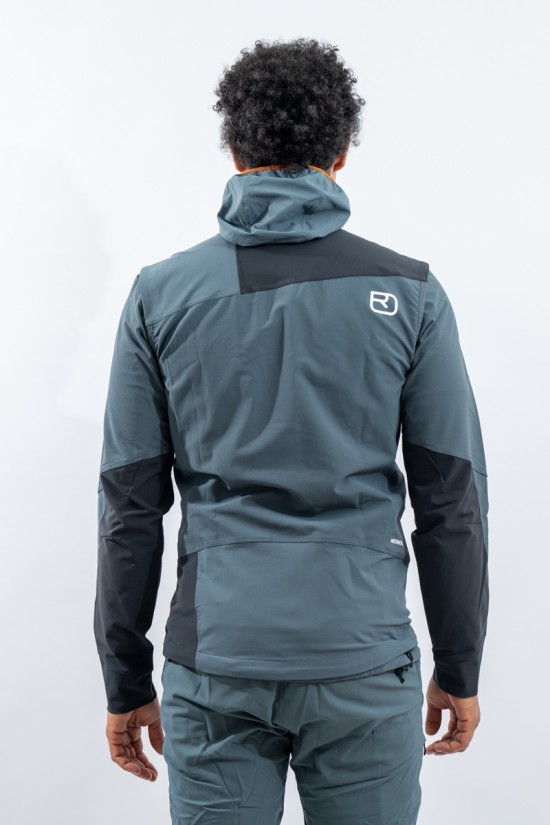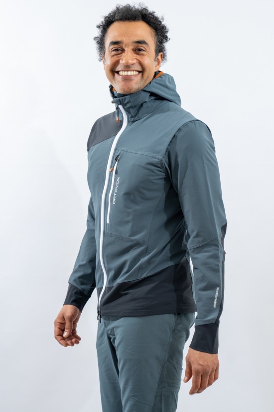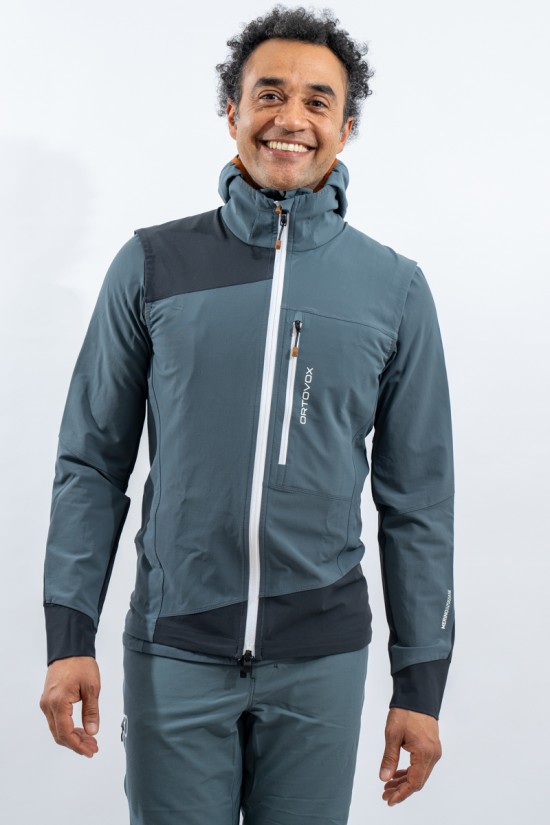 VEST Men's Shovel is built with windproof and water-repellent material (DWR treatment) in order to offer sufficient protection from wind and light precipitation. Breathability is ensured by the membrane-free structure and the fine merino wool on the inside. Reinforced areas on the shoulders, forearm and hips protect the lightweight shell from contact with the rock. ORTOVOX WOOL PROMISE.