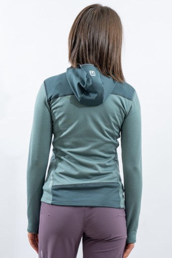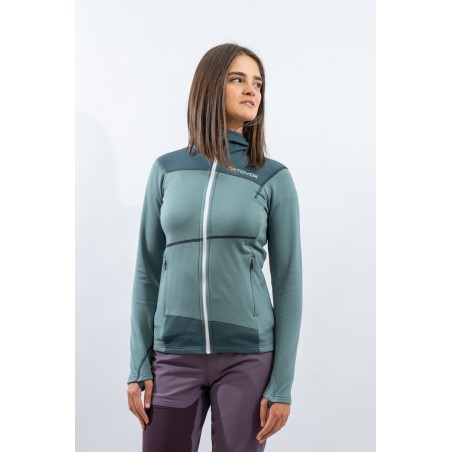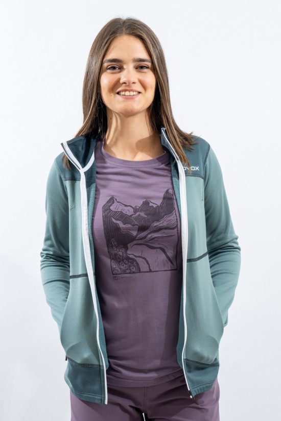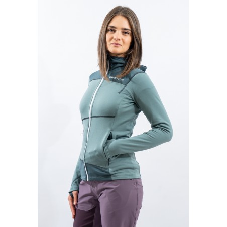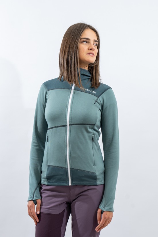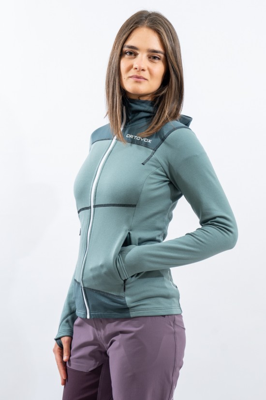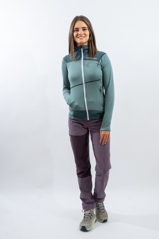 Whether you're climbing, hiking or climbing, the Fleece Light Hoody for women is an ideal companion. Durable, lightweight and thanks to the fine Tasmanian Merino Wool also pleasant on the skin. Technical features such as backpack-optimized front pockets with heat-sealed edges and thumb loop make it the ideal second layer for all seasons. When strained, the fine Tasmanian merino wool and the waffle structure on the inside ensure excellent moisture transport and thus a dry feeling on the skin. At the same time, the material is highly breathable, dries quickly and is extremely elastic. ORTOVOX WOOL PROMISE.