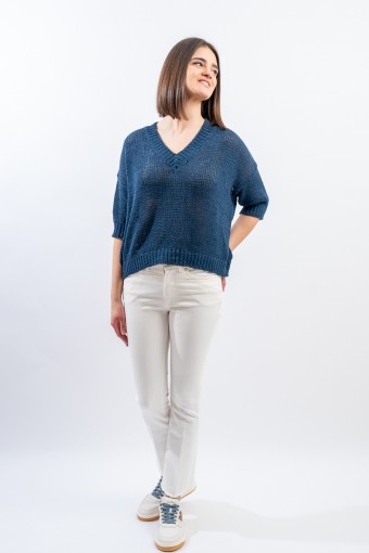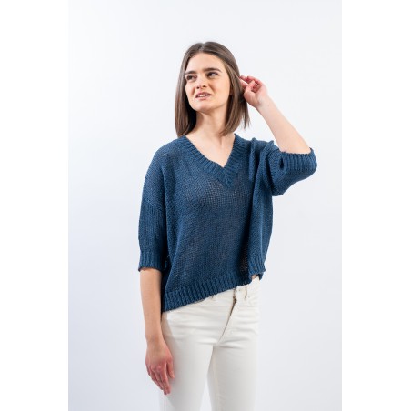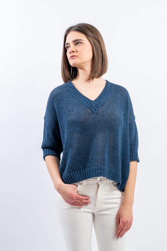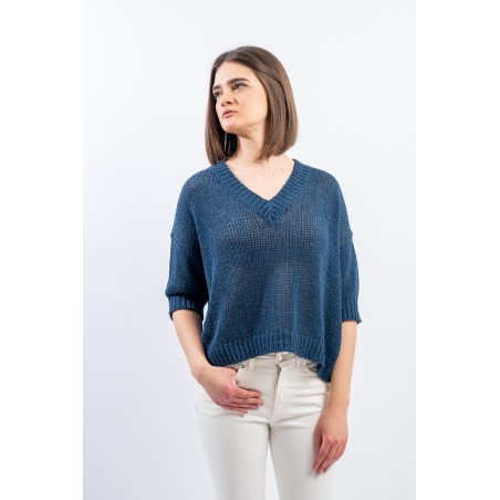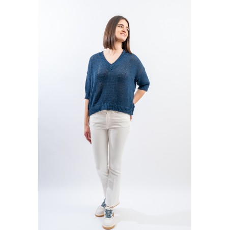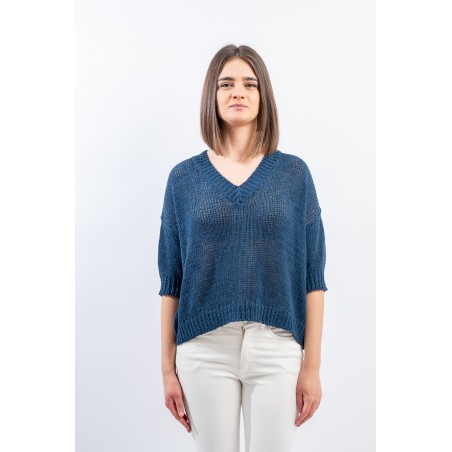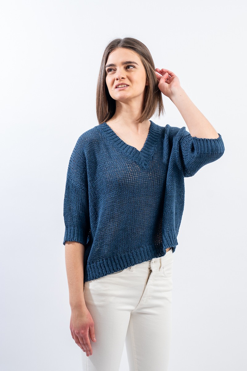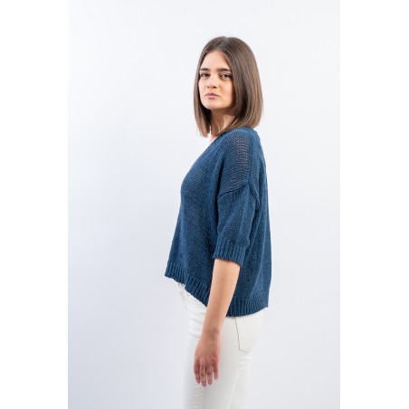 Boxy sweater made of cotton blend signed ROBERTO COLLINA. Enriched by ribbed knitting on the neckline, cuffs and hem. Oversized fit and dropped shoulder. Young cut and essential lines characterized by Made In Italy quality.
