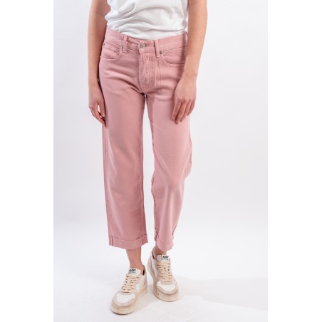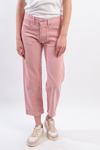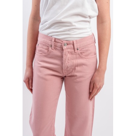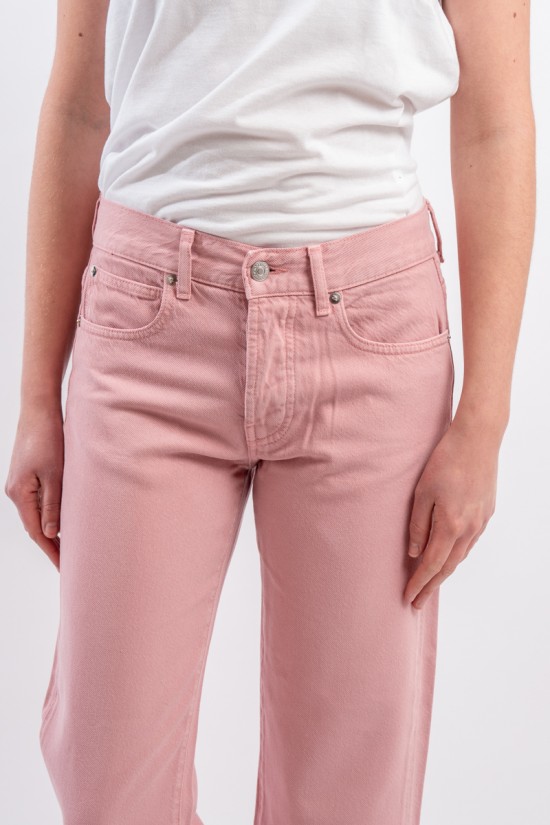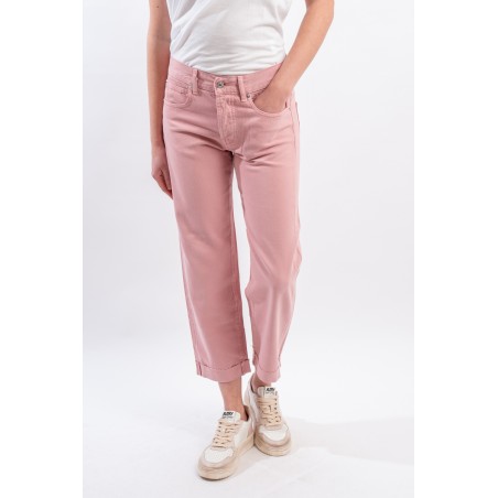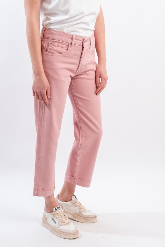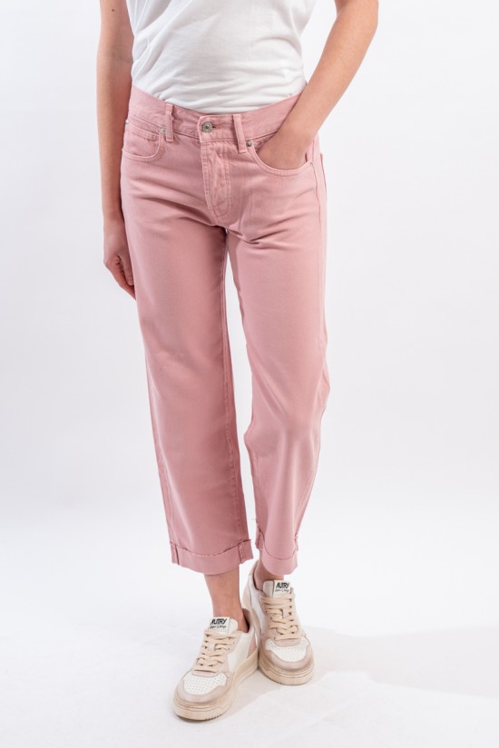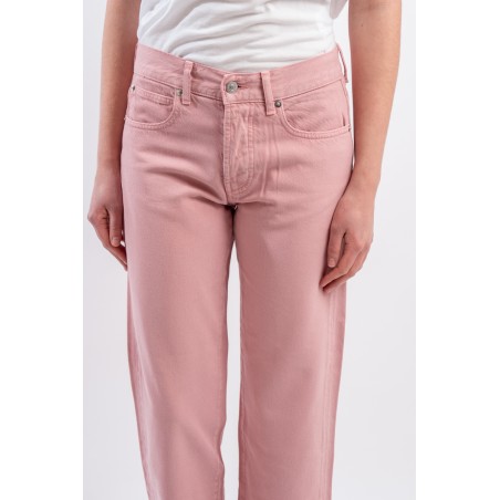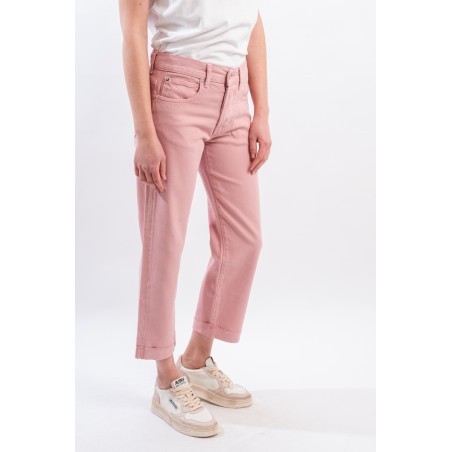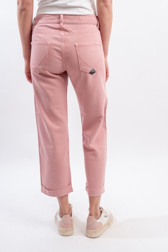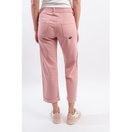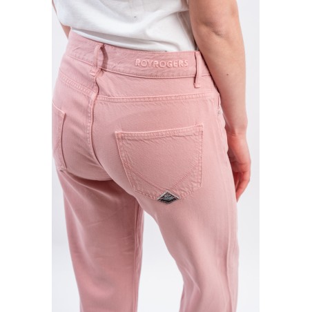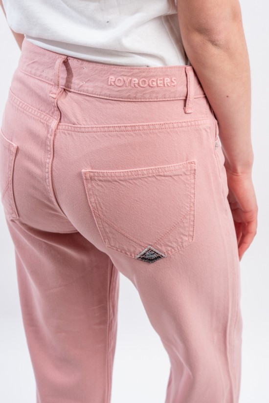 Roy Roger's Oskar jeans are made of light bull denim with a male inspiration. Dropped waist with belt loops and tone-on-tone embroidered Roy Roger's lettering on the back. Two pockets on the front and two pockets on the back with Roy Roger's label appliquéd. Closure with logo buttons. Raw-cut hem with reverse. Boyfriend fit.