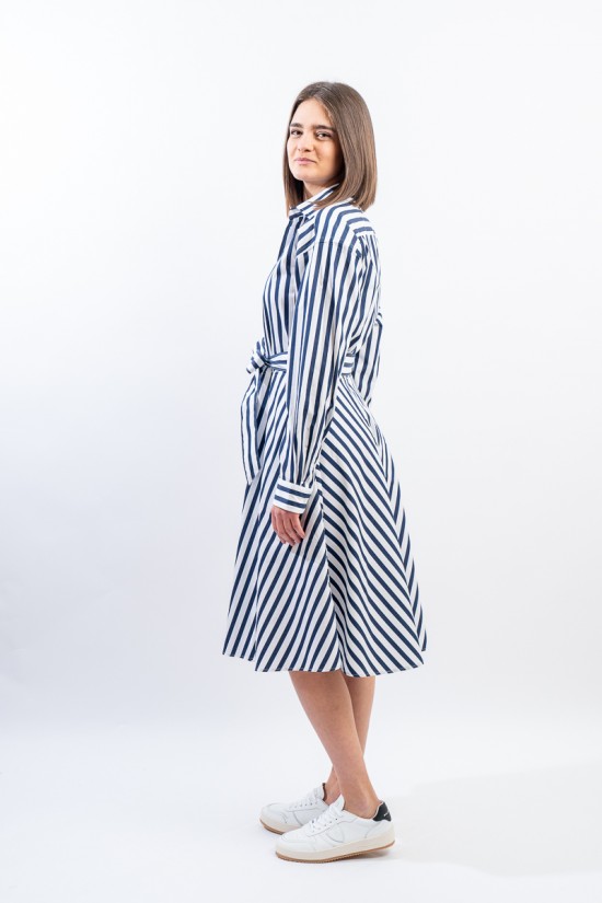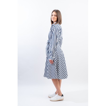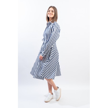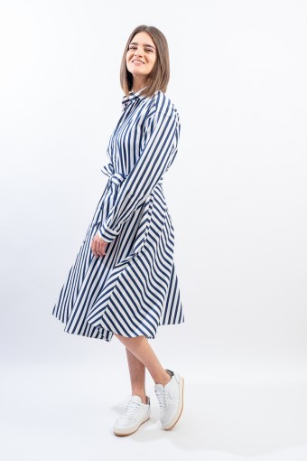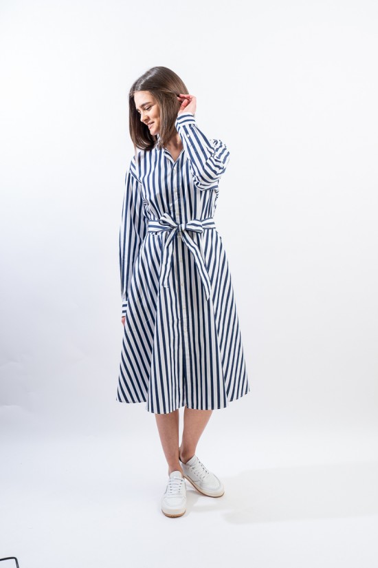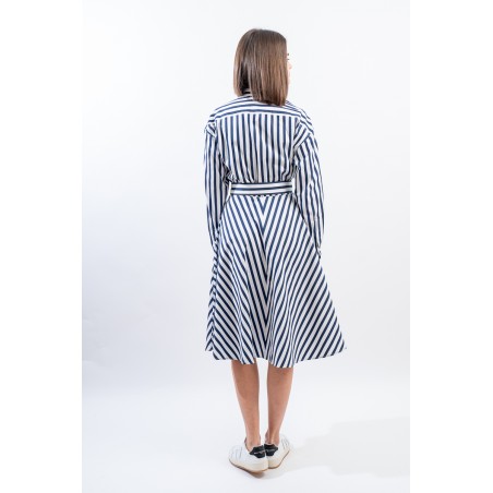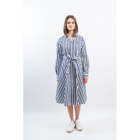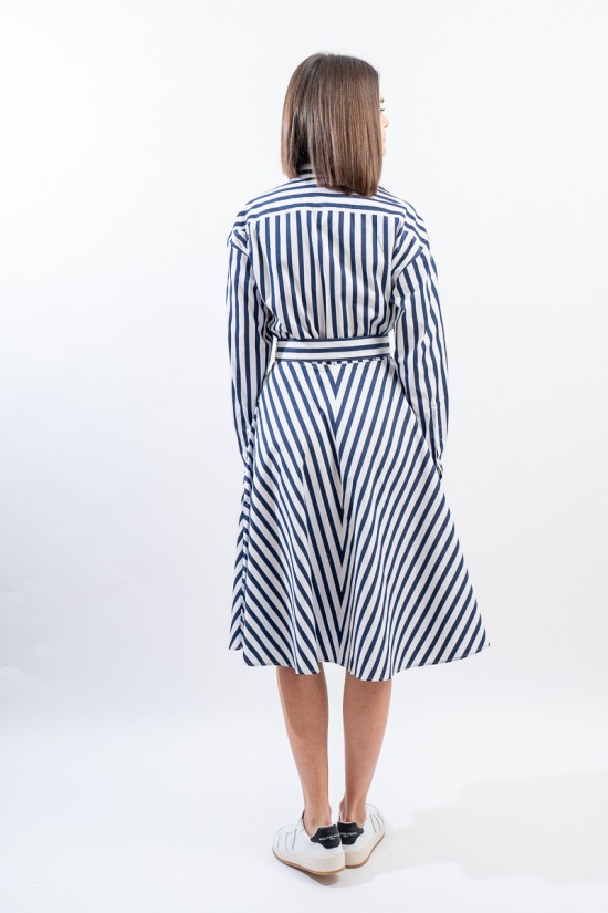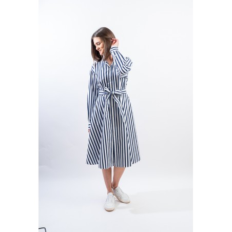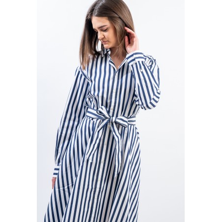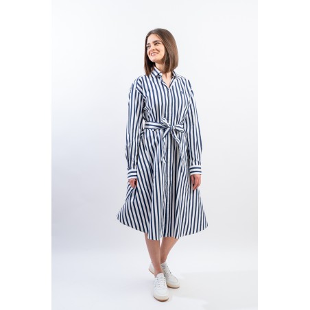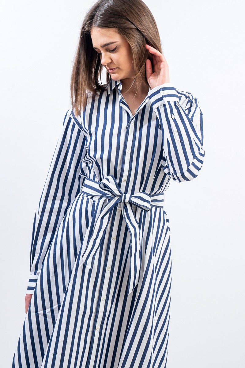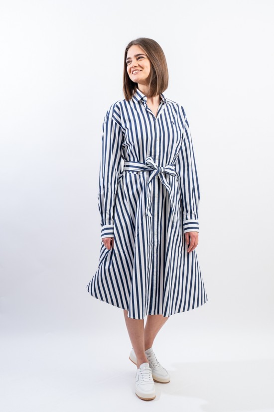 Striped shirt dress by POLO RALPH LAUREN. Made of soft cotton with an A-line silhouette, characterized by the removable fabric belt that defines the waistline. It features a central closure with mother-of-pearl buttons, a shirt collar and welt pockets on the sides. Iconic logo embroidered on the left side of the chest.