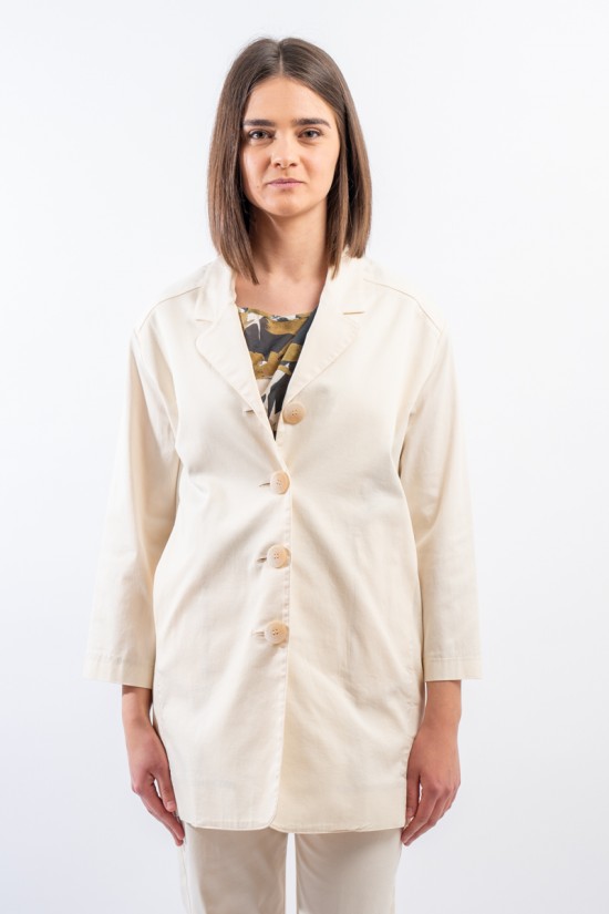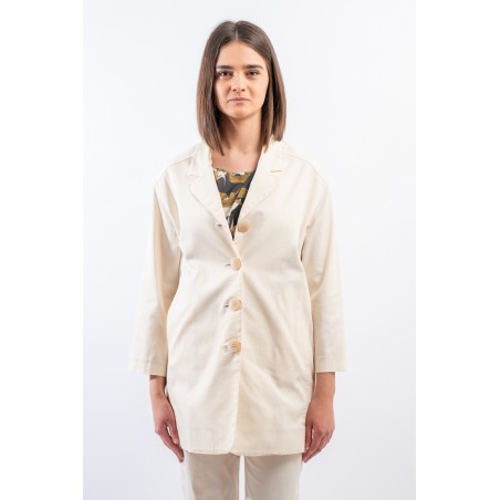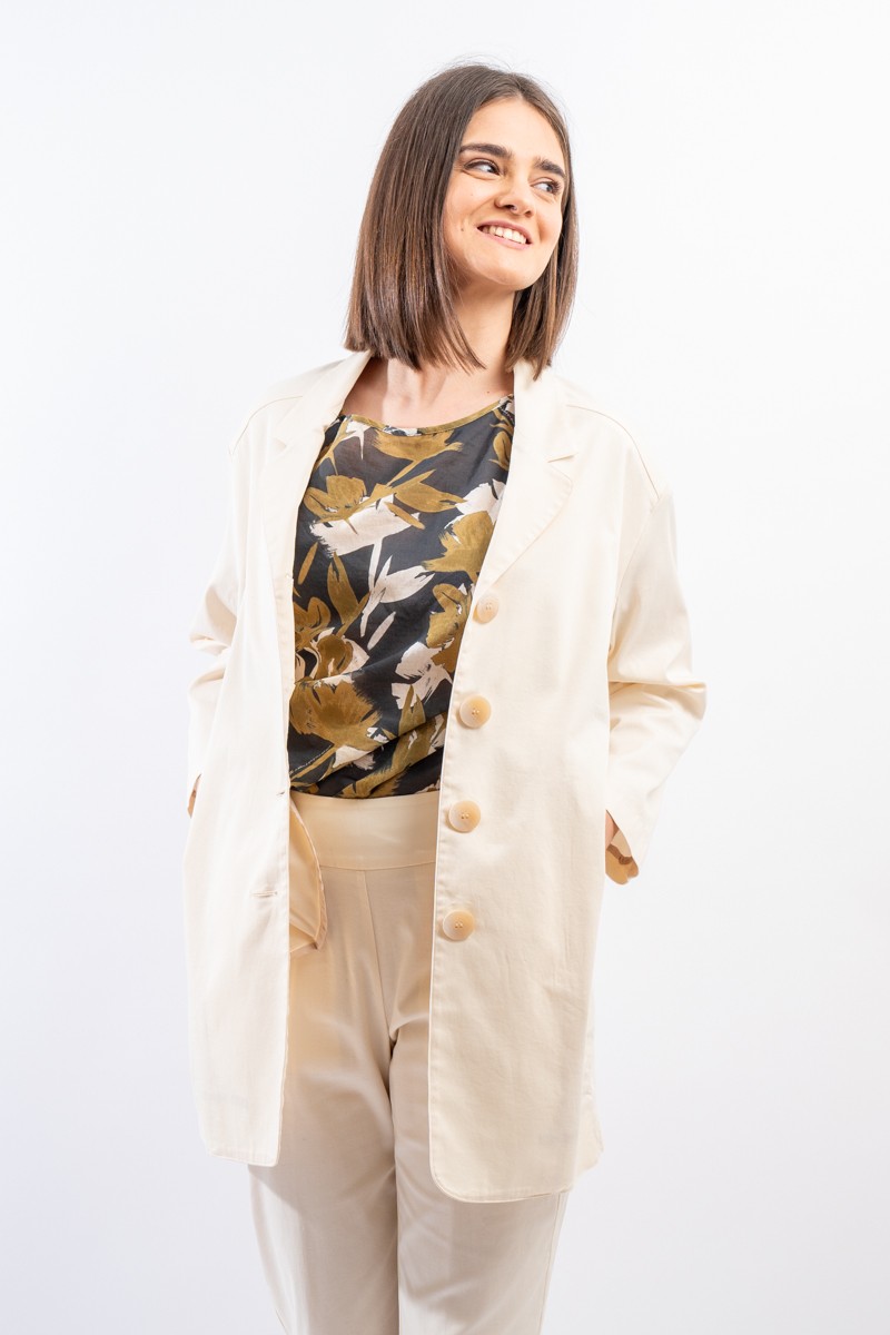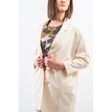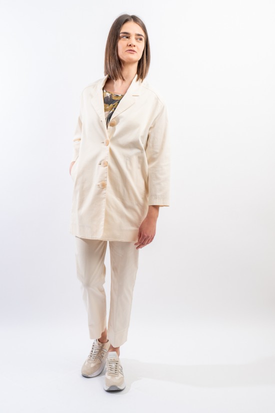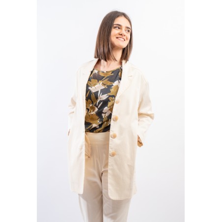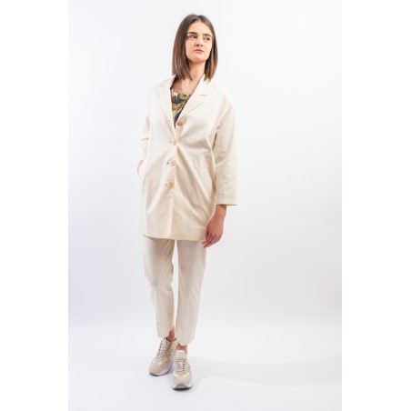 The ALESSIA SANTI pea coat is an oversized cotton outerwear, with a straight line and medium length. Versatile and lightweight, it completes both a sporty and casual chic outfit, depending on the accessories you decide to combine it with. A must-have in every woman's summer wardrobe!
