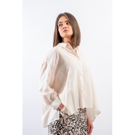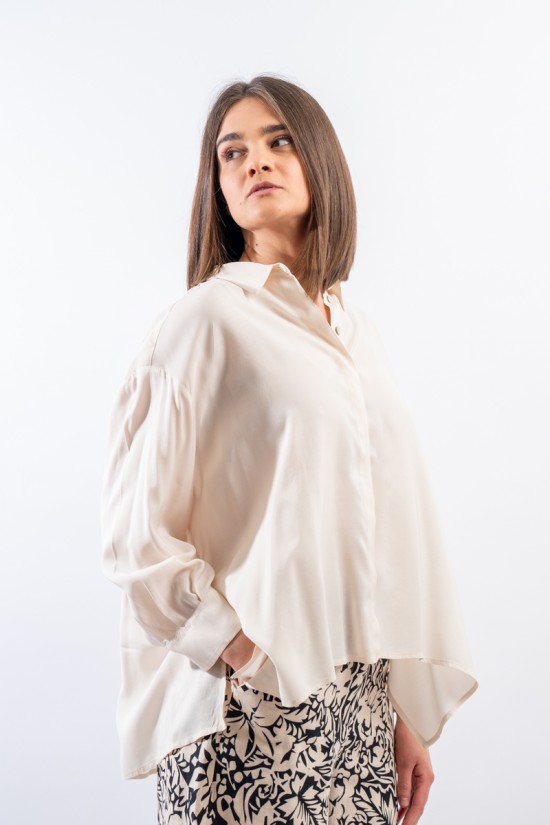 Shirt made of very light viscose, soft and shiny. Breathable, cool and pleasant to the touch, the ALESSIA SANTI shirt is wide and comfortable, with a regular fit, hidden button closure and slits on the sides. Long sleeve. Quality Made in Italy.