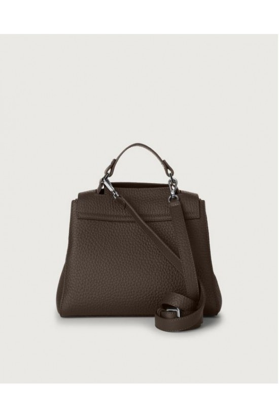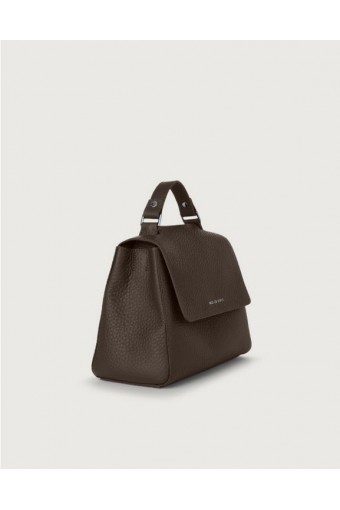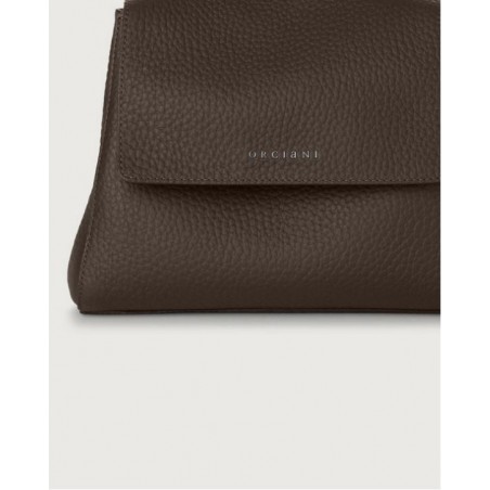 An icon of the ORCIANI world: the Sveva handbag or shoulder bag in the small size. Made of soft pebble leather with precious shiny metal details. Practical service shoulder strap included. Magnetic button closure. Internal zip pocket. Made in Italy.