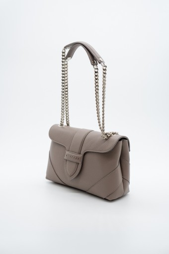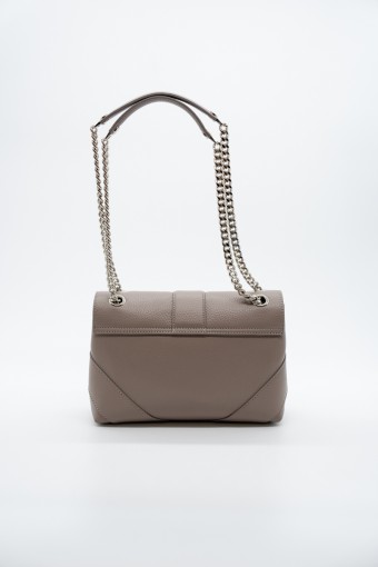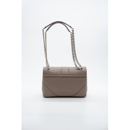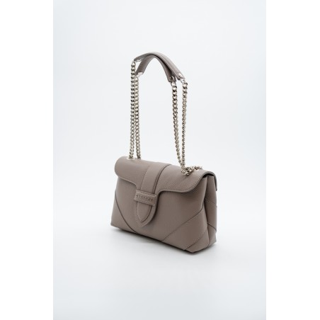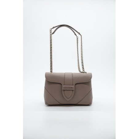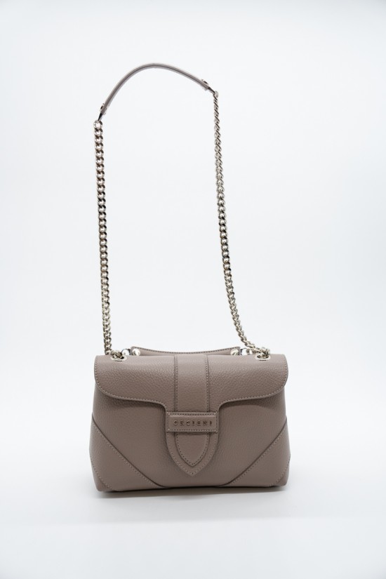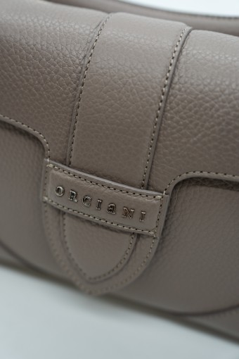 Modern and luxurious is the Alma shoulder bag by ORCIANI. Made of soft pebbled leather. Practical and versatile, to be worn over the shoulder or on the shoulder in two lengths. Embellished with tone-on-tone leather details sewn in relief and the particular curvy flap that bears the ORCIANI lettering logo. Magnetic button closure, fully lined interior in suede that features a large pocket closed by zip and two open pockets. Perfect to complete a special outfit for a special occasion. Strictly Made in Italy.