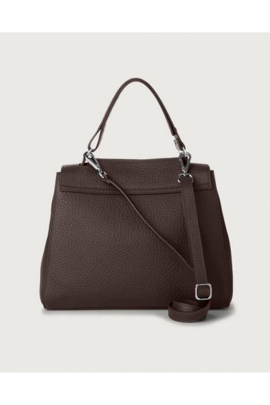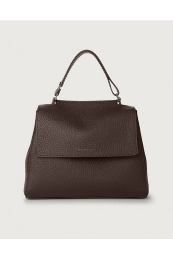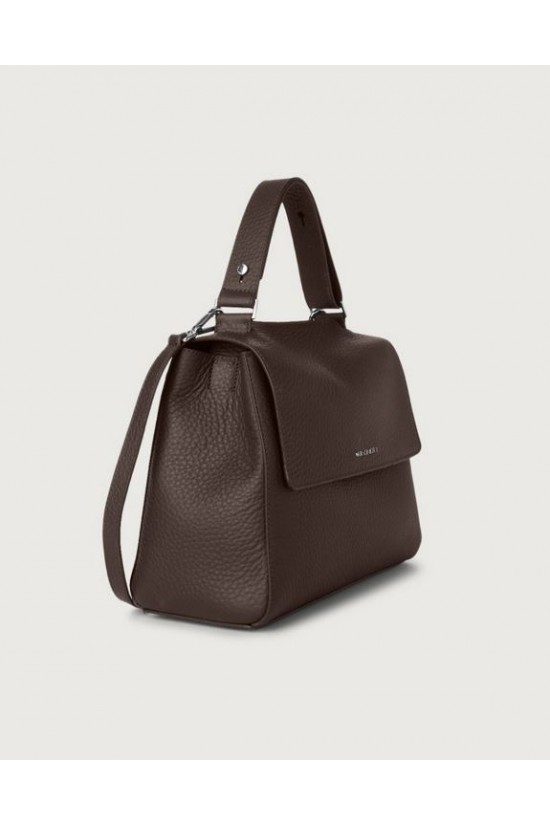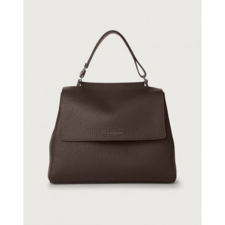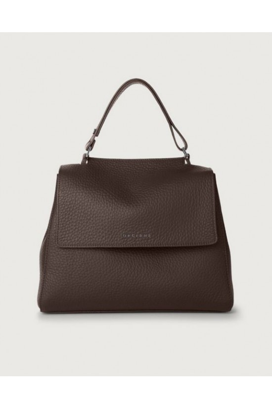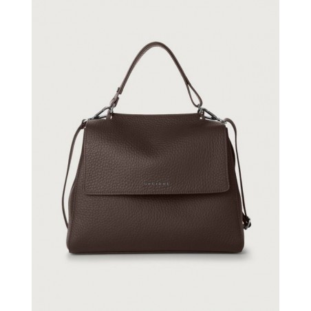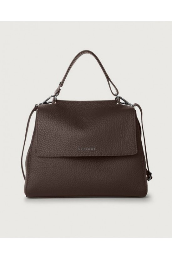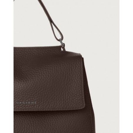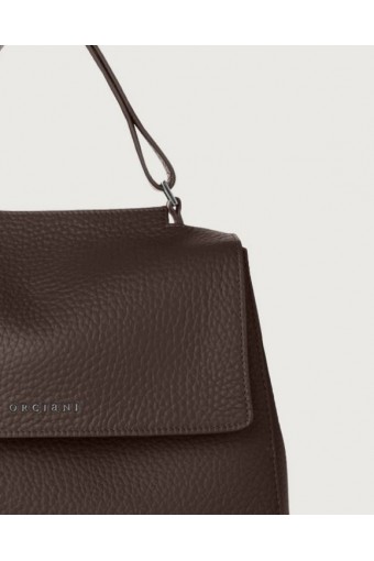 Sveva in the medium version certainly represents the iconic and timeless bag signed ORCIANI. Practical and versatile, to be carried by hand, on the shoulder or crossbody. Made of soft pebble leather with magnetic button closure. Internal zip pocket. Embellished with shiny metal details and the ORCIANI logo in metal lettering applied on the front. Made in Italy.
