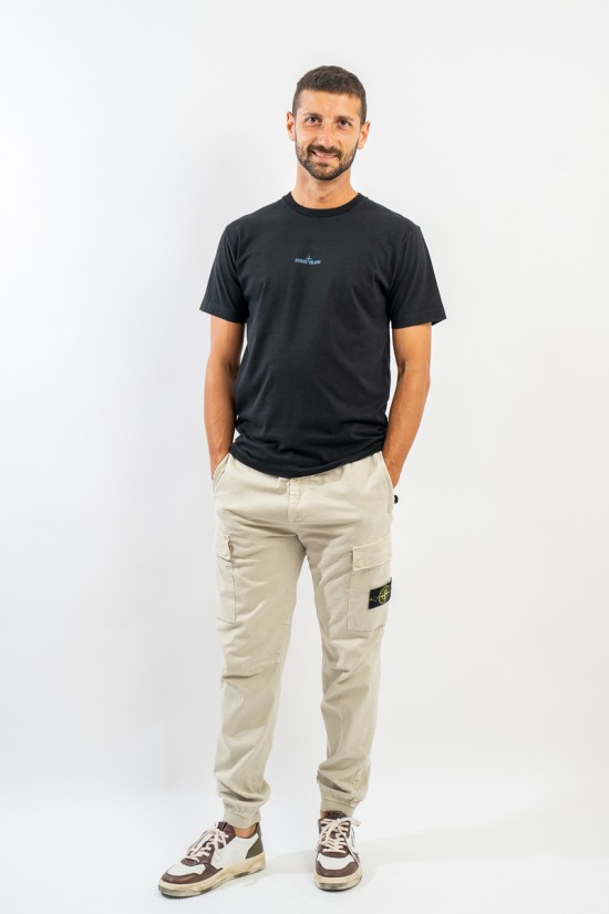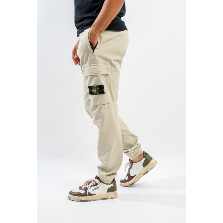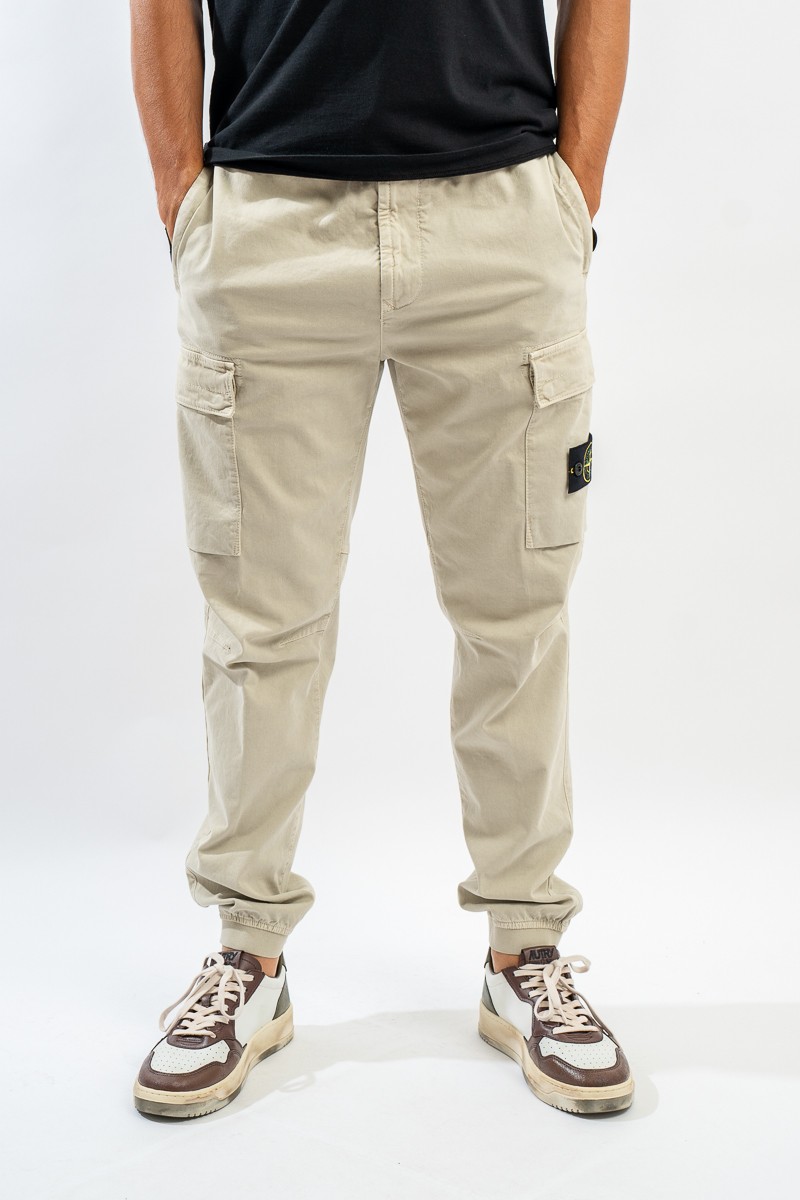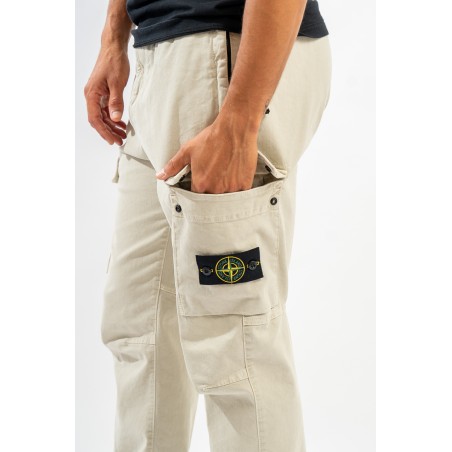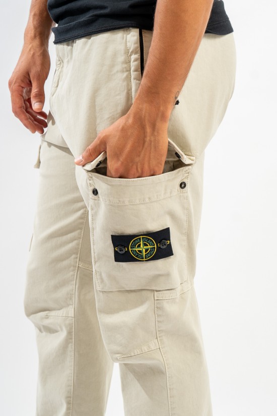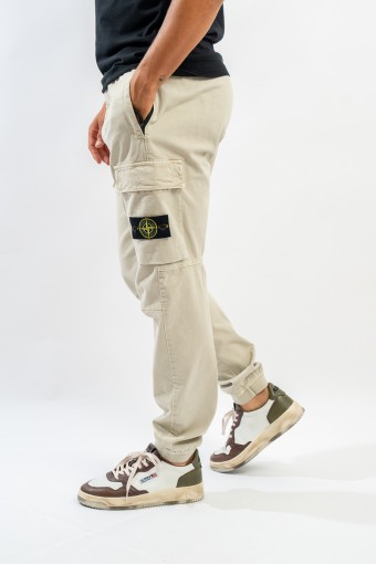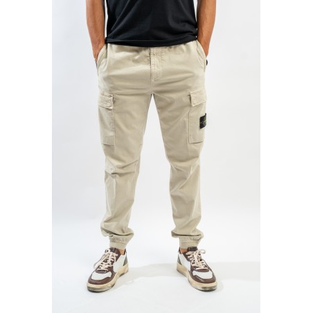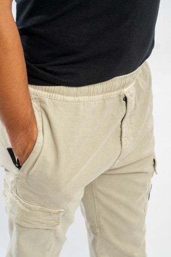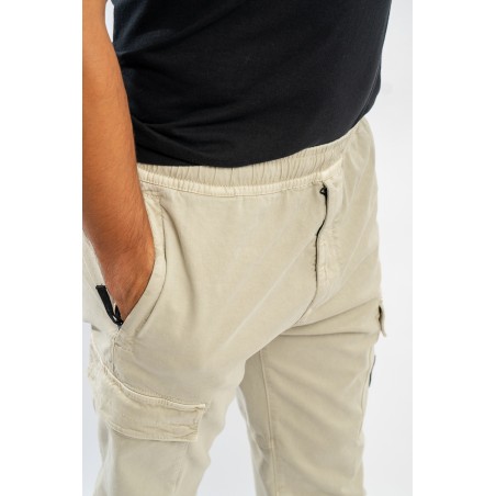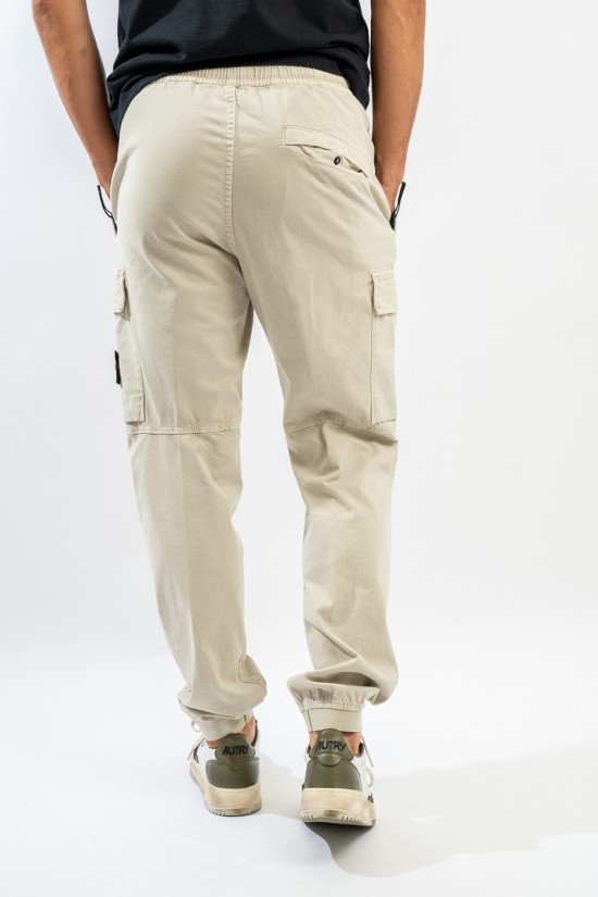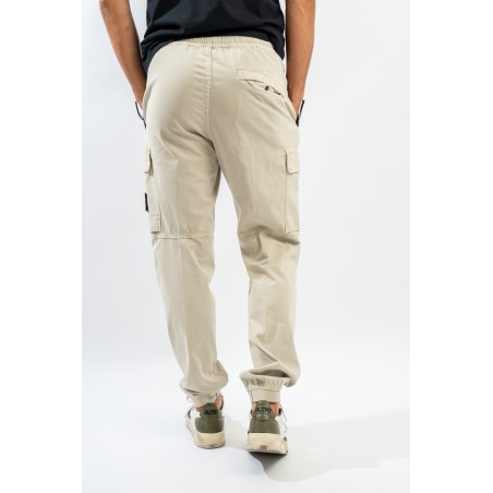 Pocketed trousers in stretch broken twill organic cotton. Garment dyed with a special "old" treatment that gives a slightly aged and three-dimensional effect. Soft and comfortable designed to ensure an ideal fit, in fact, elastic waistband with drawstring and elasticated cuff at the bottom in addition to the high-performance knees adapt and enhance the model. Side patch pockets closed by flap, double side pockets with zip are just some of the details that characterize the garment. Perfect for any occasion...