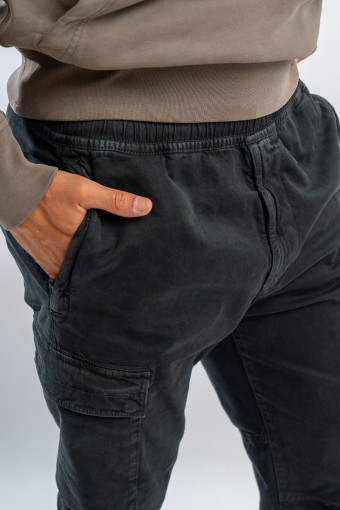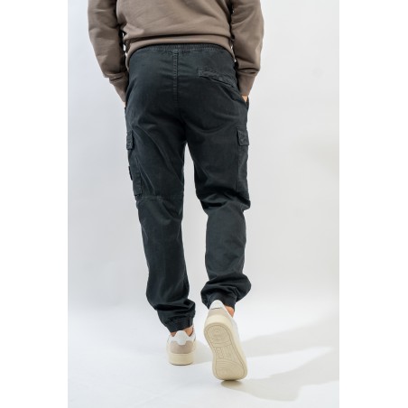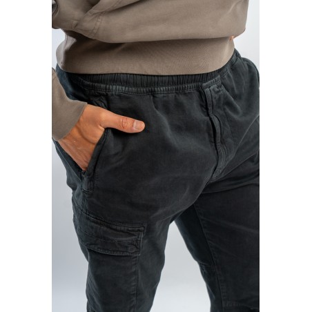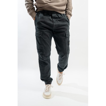 Pocketed trousers in stretch broken twill organic cotton. Garment dyed with a special "old" treatment that gives a slightly aged and three-dimensional effect. Soft and comfortable designed to ensure an ideal fit, in fact, elastic waistband with drawstring and elasticated cuff at the bottom in addition to the high-performance knees adapt and enhance the model. Side patch pockets closed by flap, double side pockets with zip are just some of the details that characterize the garment. Perfect for any occasion...