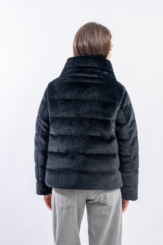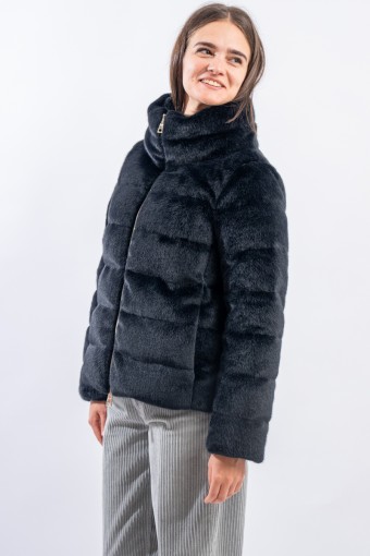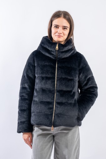 Hood HERNO made of soft faux fur and padded with fine class 1 goose down. The crater collar detail gives a practical and modern touch. Quilted design and slightly flared essential line. Regular fit. Refined and feminine like a fur, warm and comfortable like a down jacket!