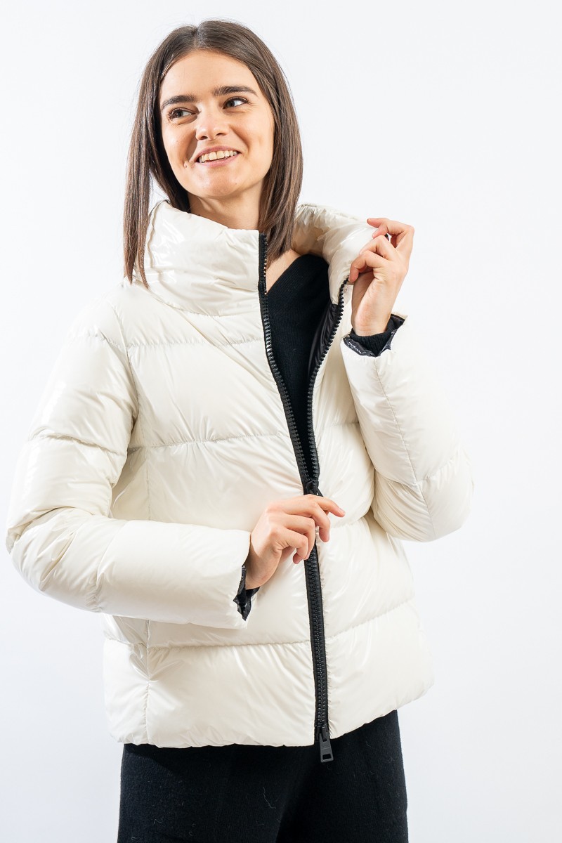 - short shiny down jacket