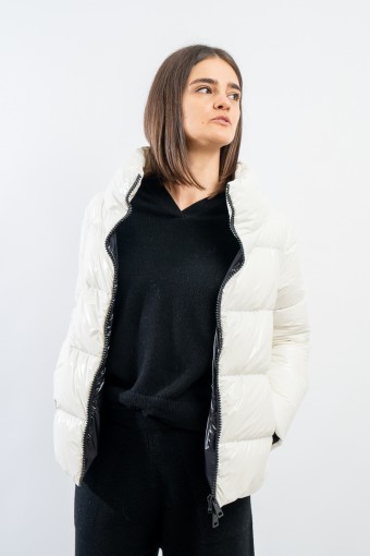 Bright and shiny is the hood by HERNO, made in the iconic glossy gloss. Characterized by the central double-way closure, the enveloping high collar and the double side welt pockets closed by a press stud. Embellished on the back with an embroidered logo patch. Practical and functional garment thanks to the goose down padding and water-repellent treatment. Ideal for the mountains, but also for the city, to complete a casual-chic outfit.