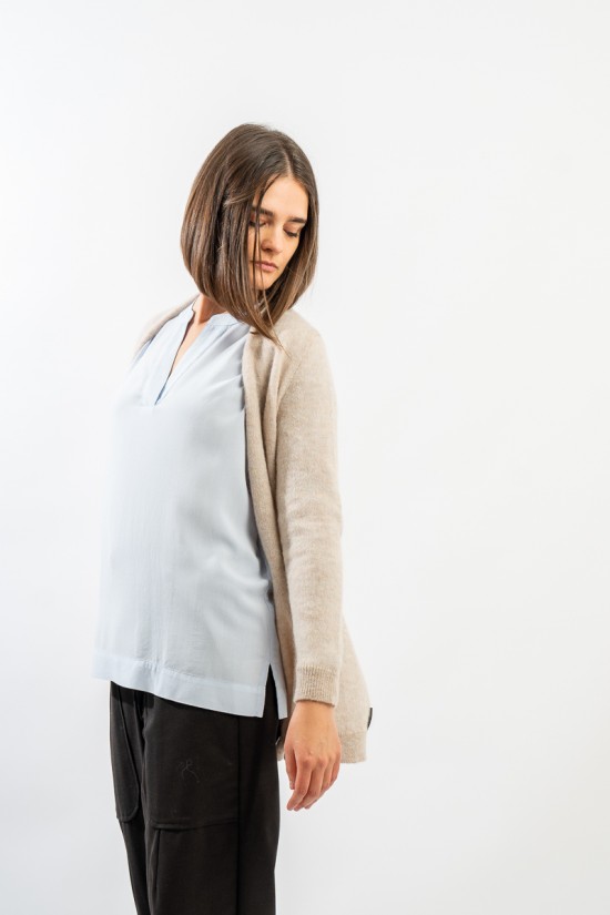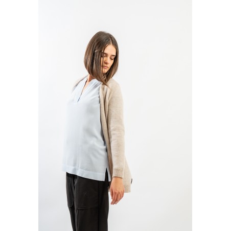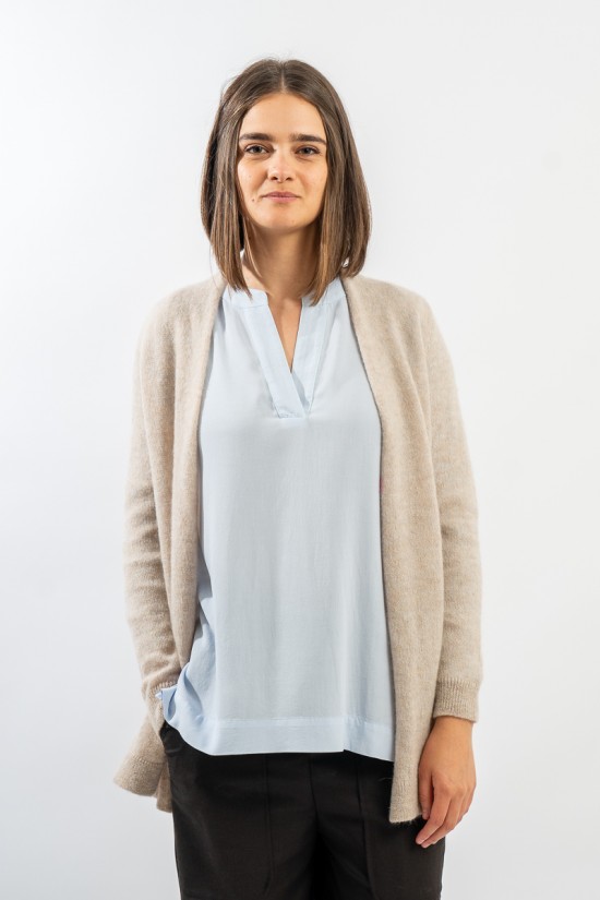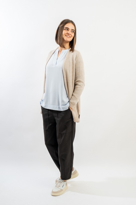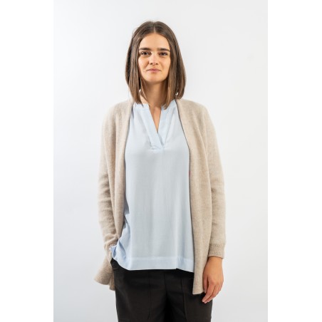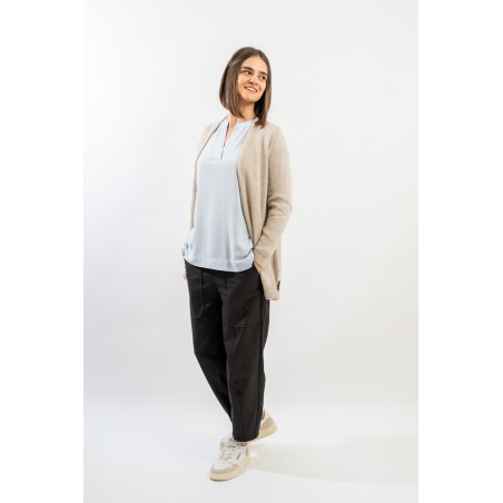 The ALESSIA SANTI long cardigan is a versatile and chic garment, made of a soft wool and alpaca blend yarn. You can wear it open for a casual and relaxed look. Perfect to combine with jeans, skirts or even on a dress, it is a must-have to include in your wardrobe! Made in Italy.