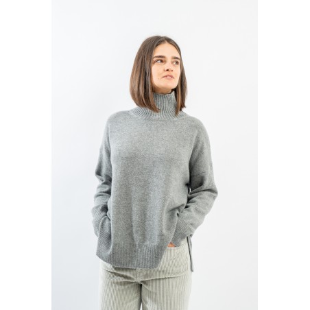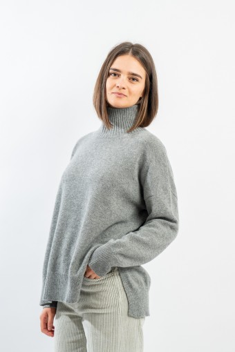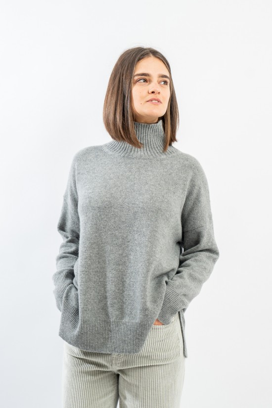 Roberto Collina turtleneck sweater with side slits made of fine cashmere blend merino wool. Stockinette knit garment with English rib collar, bottom and cuffs for greater comfort. Very soft and easily combined, it is a versatile garment suitable for any occasion of use. Oversized fit for this Made in Italy sweater.