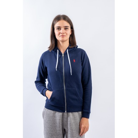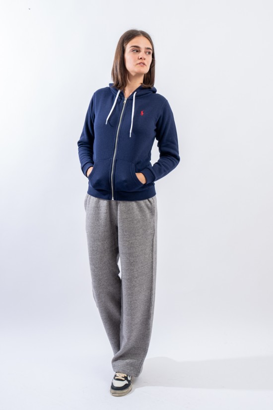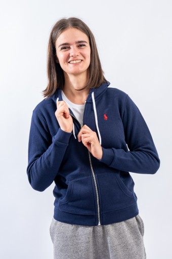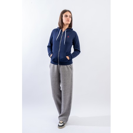 Full zip sweatshirt with hood adjustable by drawstring. Made of soft cotton, it is warm and comfortable, perfect for the cold season. Regular fit.