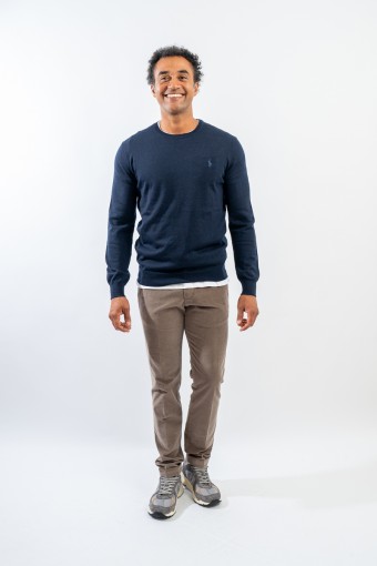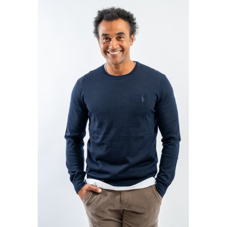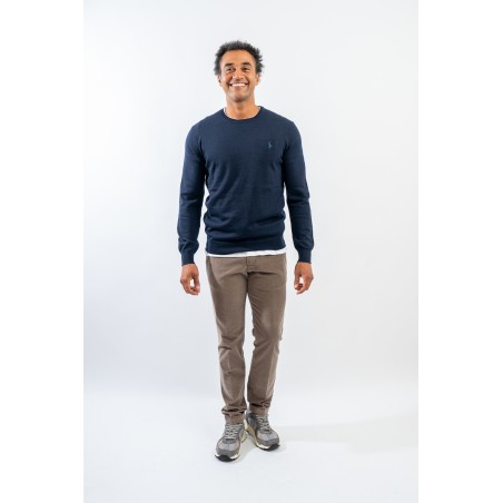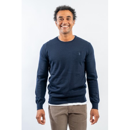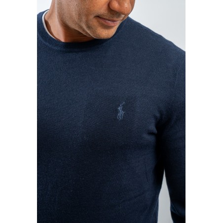 Very light crewneck sweater by POLO RALPH LAUREN. Made of soft merino wool, where the textur is smooth and soft thanks to the processing of worsted wool yarns made in Italy. Collar, cuffs and hem are ribbed. Embellished on the chest with the iconic embossed embroidered pony.