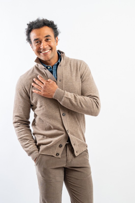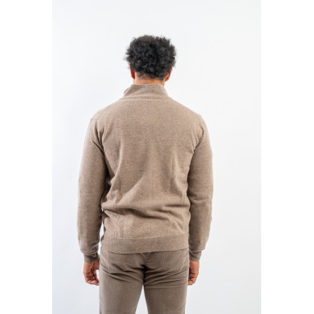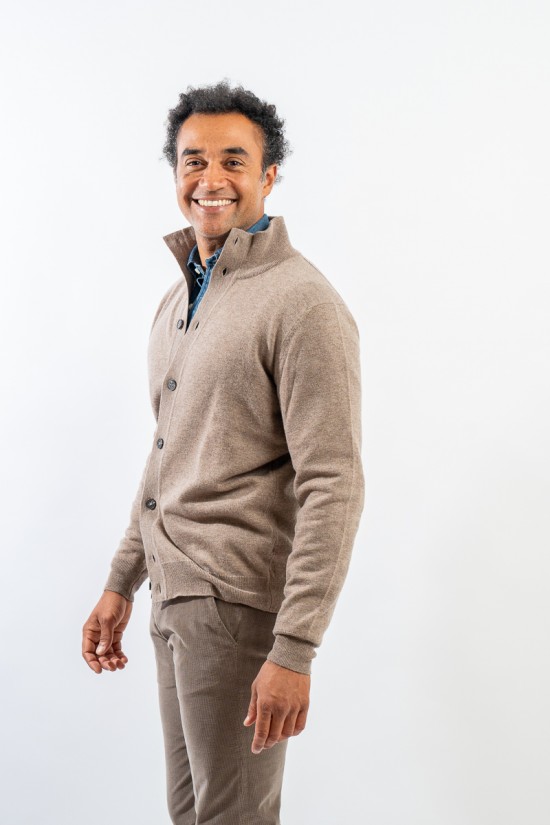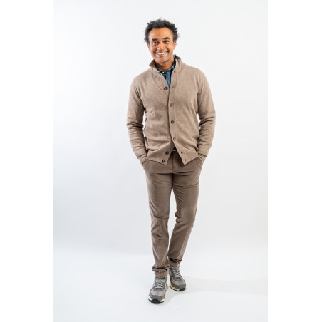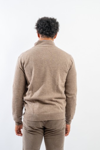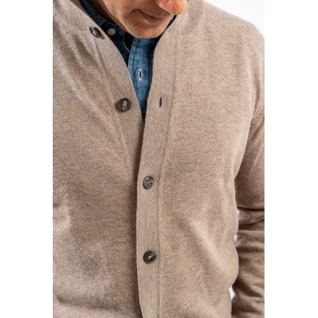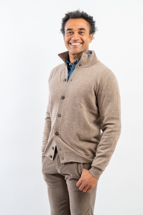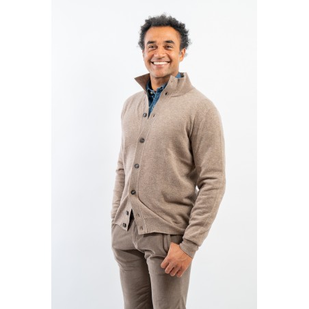 Turtleneck cardigan jacket by KANGRA made of 100% wool with stockinette knit. Central closure with ribbed buttons, ribbed bottom, collar and cuffs. Made in Italy.