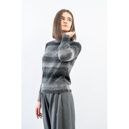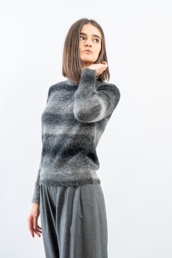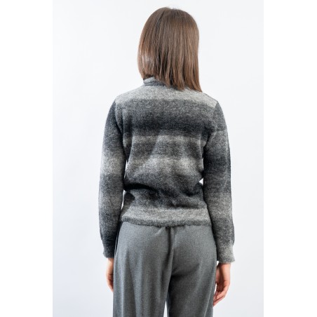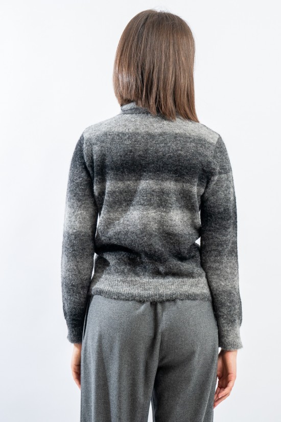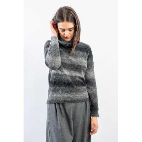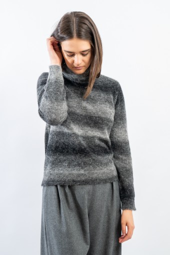 Turtleneck made of fine alpacha blend yarn. Characterized by the printed effect shades and the high raw-cut collar, it is soft, warm and precious.