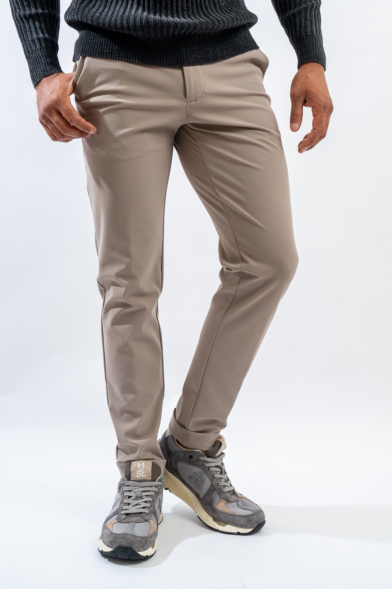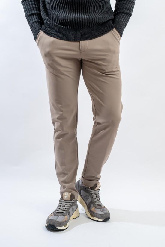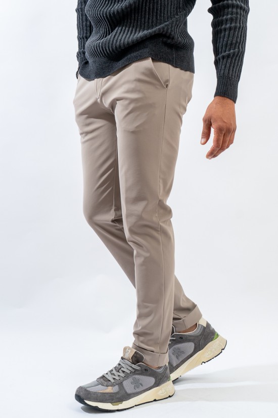 Stretch chinos in RRD tone. The revolutionary trousers made of stretch textured microfiber. Cool and comfortable, ideal to wear from morning to evening! Slanted front pockets with zip closure. Double welt pockets on the back with patch applied on top and flap on the bottom.