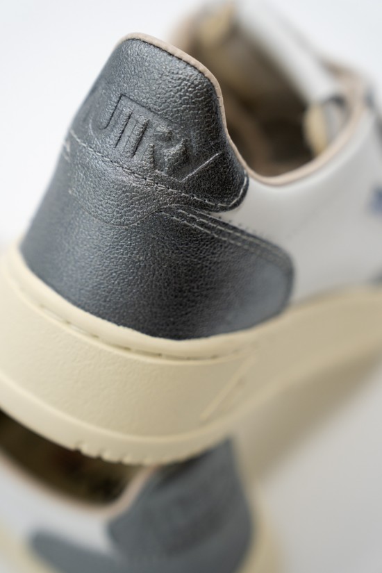 Autry is the sneaker inspired by the Eighties. The vintage style is made contemporary by iconic details such as the heel tab with embossed logo and the label sewn on the tongue. The upper is made of soft leather and enlivened by the two-tone white leather and metallic steel inserts. The toe is perforated to promote breathability. Its originality is identified in the American flag that characterizes each model. The sole is made of natural rubber and the bottom recalls the color of the upper.
