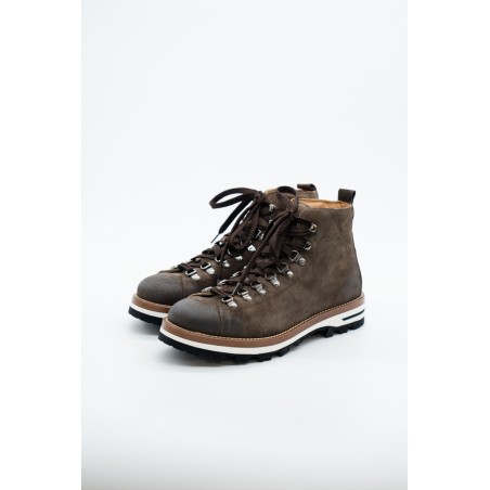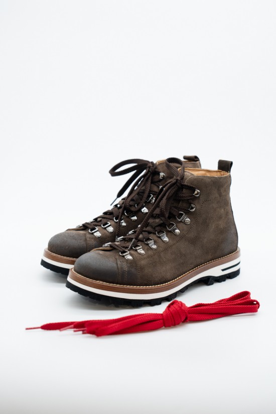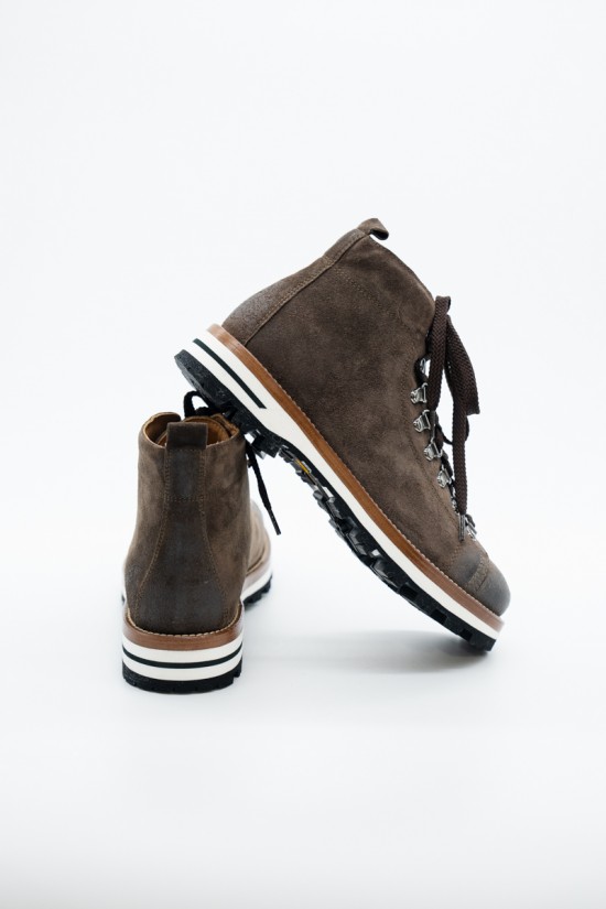 MON PIZ is the brand that takes inspiration from the Alpine peaks, creates its products by hand and 100% Made in Italy. The Cortina model is made of soft suede and brushed vintage effect, we offer it in the jet color. Perfect for the mountains thanks to the vibram sole and leather welt, it is also ideal for the city with its elongated and elegant design. Born from the encounter between urban style and mountain classic, MON PIZ is the perfect shoe in all conditions and situations. Every detail encompasses craftsmanship and Italian quality for the new must-have of the present and future winter!