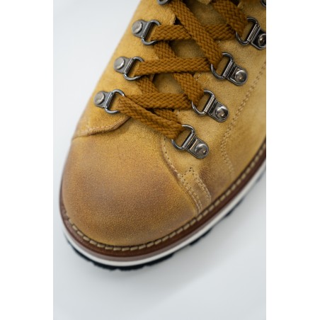 MON PIZ is the brand that takes inspiration from the Alpine peaks, creates its products by hand and 100% Made in Italy. The model is made of soft suede and brushed vintage effect, we offer it in rye color. Perfect for the mountains thanks to the vibram sole and leather welt, it is also ideal for the city with its elongated and elegant design. Born from the encounter between urban style and mountain classic, MON PIZ is the perfect shoe in all conditions and situations. Every detail encompasses craftsmanship and Italian quality for the new must-have of the present and future winter!