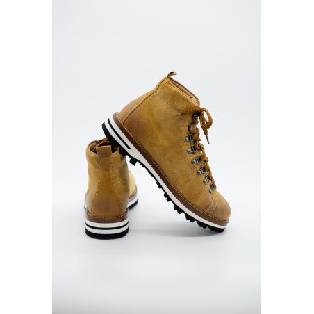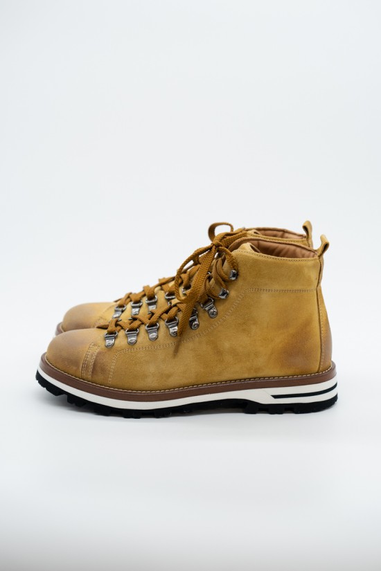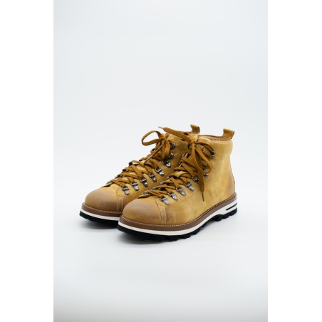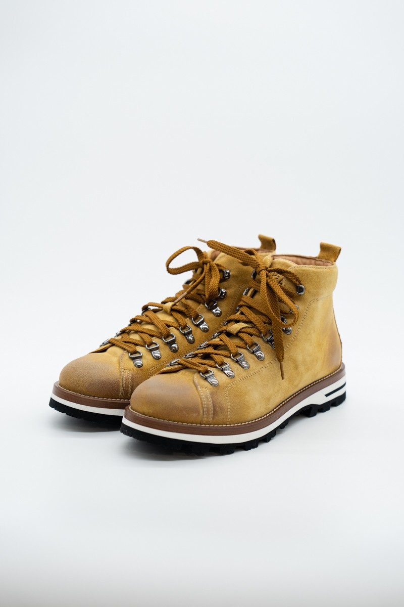 MON PIZ is the brand that takes inspiration from the Alpine peaks, creates its products by hand and 100% Made in Italy. The model is made of soft suede and brushed vintage effect, we offer it in rye color. Perfect for the mountains thanks to the vibram sole and leather welt, it is also ideal for the city with its elongated and elegant design. Born from the encounter between urban style and mountain classic, MON PIZ is the perfect shoe in all conditions and situations. Every detail encompasses craftsmanship and Italian quality for the new must-have of the present and future winter!