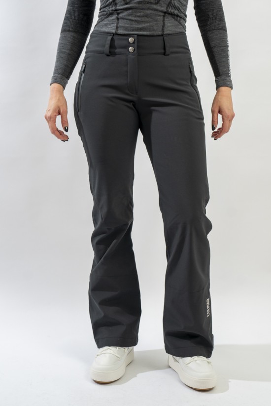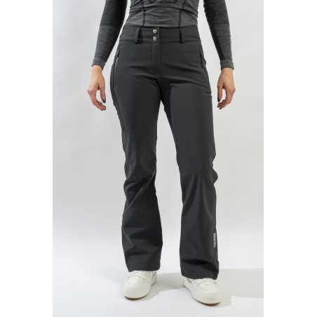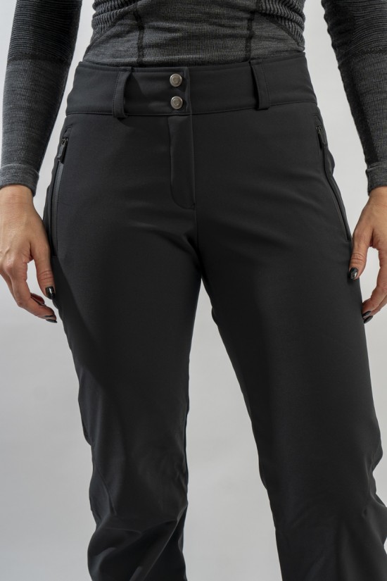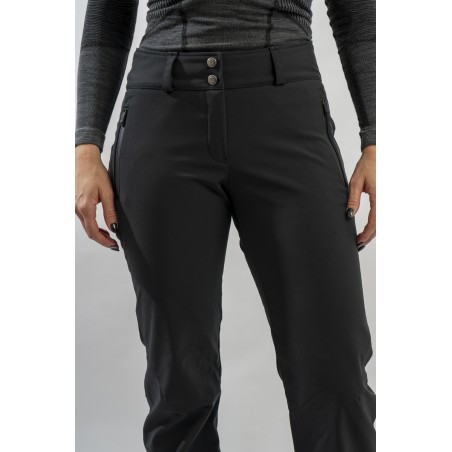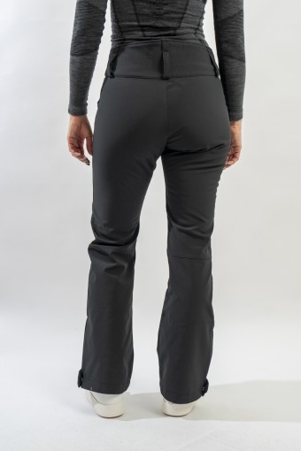 Ski pants made of stretch softshell fabric with fleece inside. Waterproof and breathable. Slim fit and high waist reinforced on the lumbar area. Complete with belt loops for better adaptability. Finished with a waterproof powder skirt and zips, it's great on snow in all conditions.